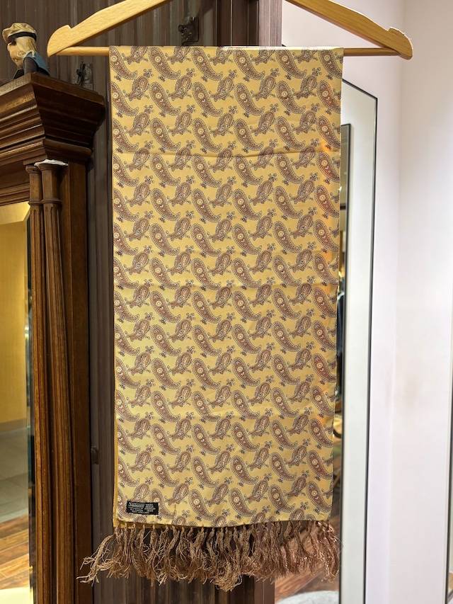 <ABOUT> イギリスの名門、サミーのスカーフ。 肌触りのいいレーヨン生地で、柔らかなクリームカラーのペイズリー。 様々な服装に馴染みの良い、合わせやすい一枚です。 小穴、生地の薄いところが中央にございます。 MADE IN ENGLAND 取扱店舗:有楽町店 <SIZE> 長さ:114cm 幅 :27cm ※平置きでの採寸となりますので多少の誤差がある場合がございます。 予めご了承下さい。 <CONDITION> USED