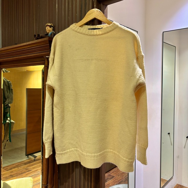 <ABOUT> オリジナルのガンジーセーター程密ではなく、 軽さも魅力のため良い1着です。 ホワイトカラーで、シンプルでどのコーディネートにも合わせやすく、スリットのおかげでスッキリとしたシルエットに見せてくれます。 使用感や汚れもございますので、必ずお写真にてご確認の上、ご購入の程をお願いいたします。 ・フロント胸部に線状の汚れがございます。 ・右手リブ部分に茶色い汚れがございます。 ・裏側中央部にほつれがございます。 取扱店舗:有楽町店 <SIZE> SIZE M 肩幅 :59cm 身幅 :55cm 着丈 :68cm 袖丈 :51cm ※平置きでの採寸となりますので多少の誤差がある場合がございます。 予めご了承下さい。 <CONDITION> used <NOTE> VINTAGE商品の為、汚れや傷等がある場合がございます。 ご理解の上、ご注文をお願い致します。