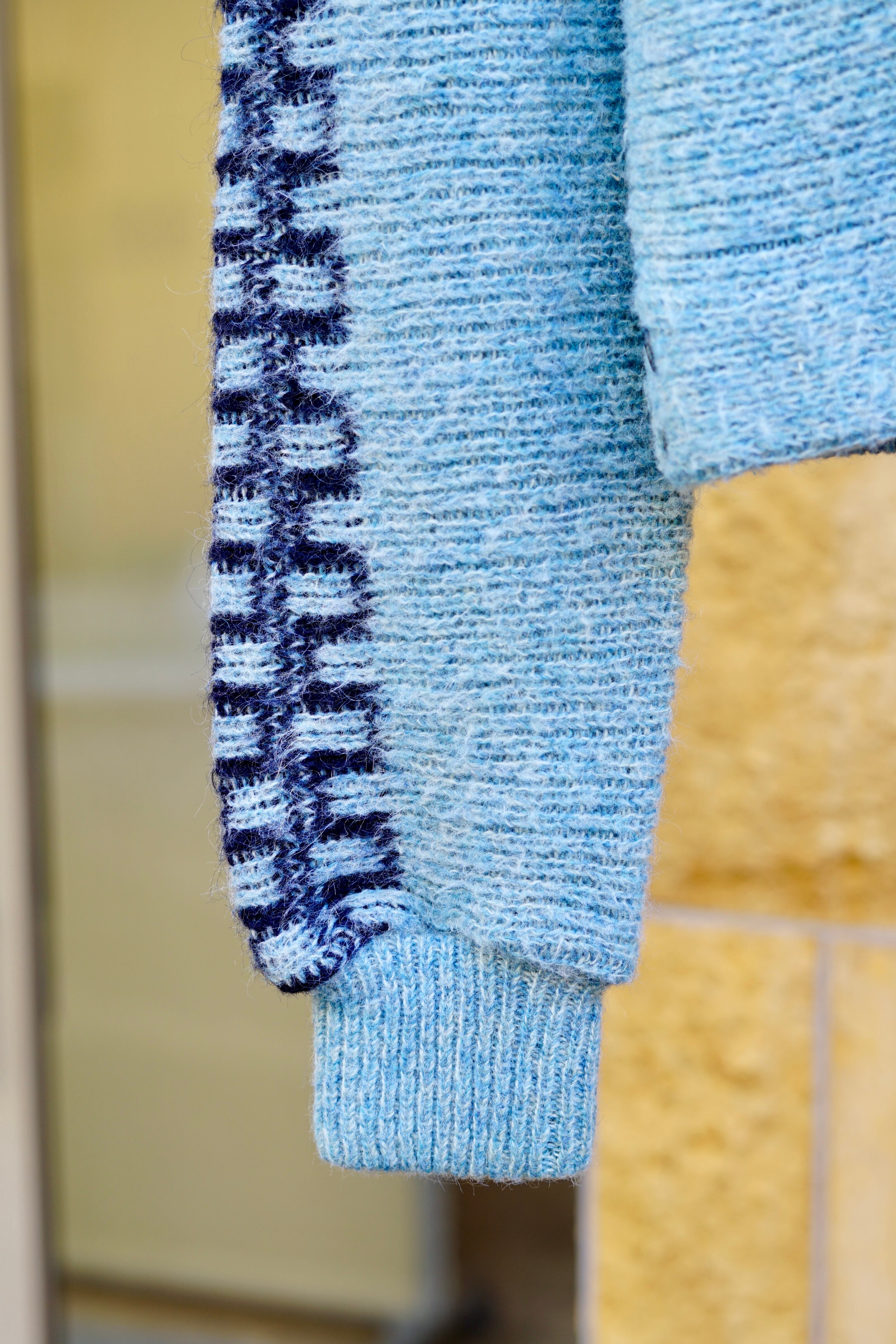 モヘア混紡率25%ながら毛足が長く、アクリルも含んだラムウールで柔らかく温かみのある素材感。