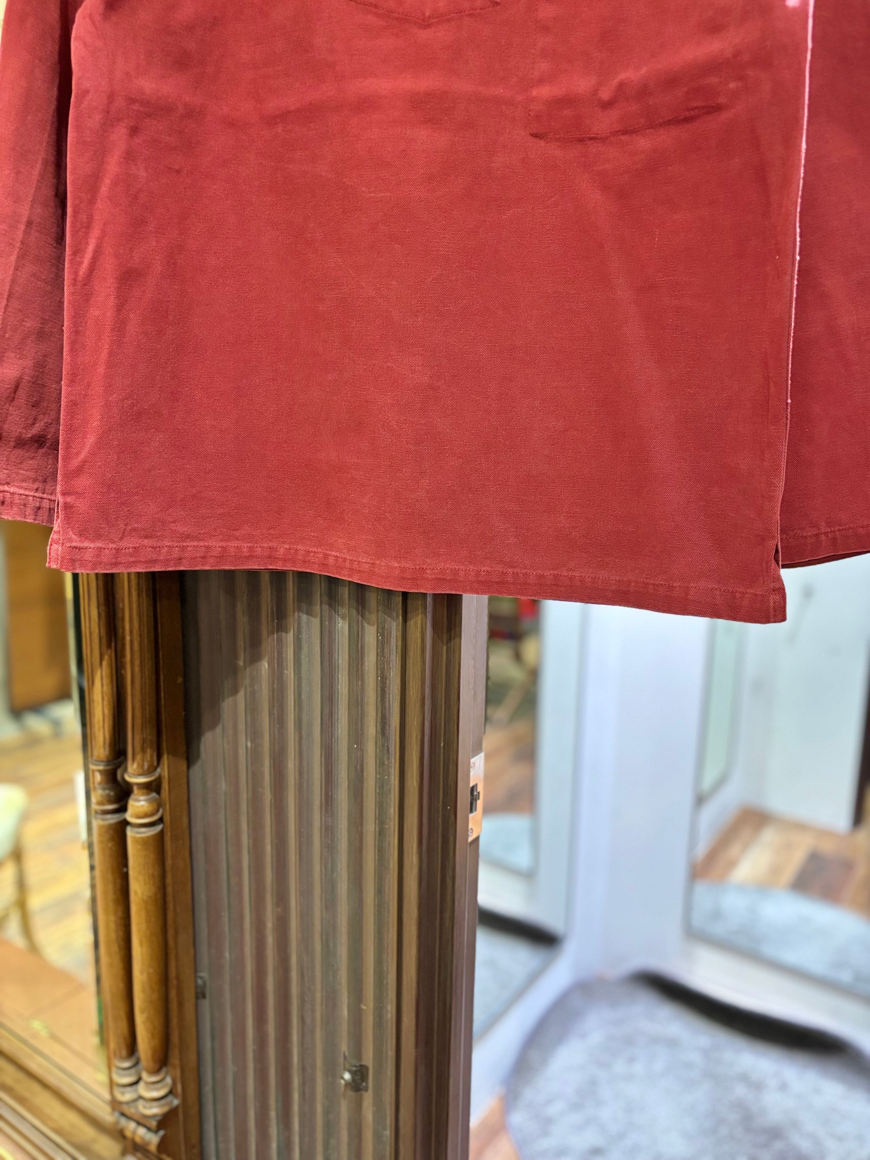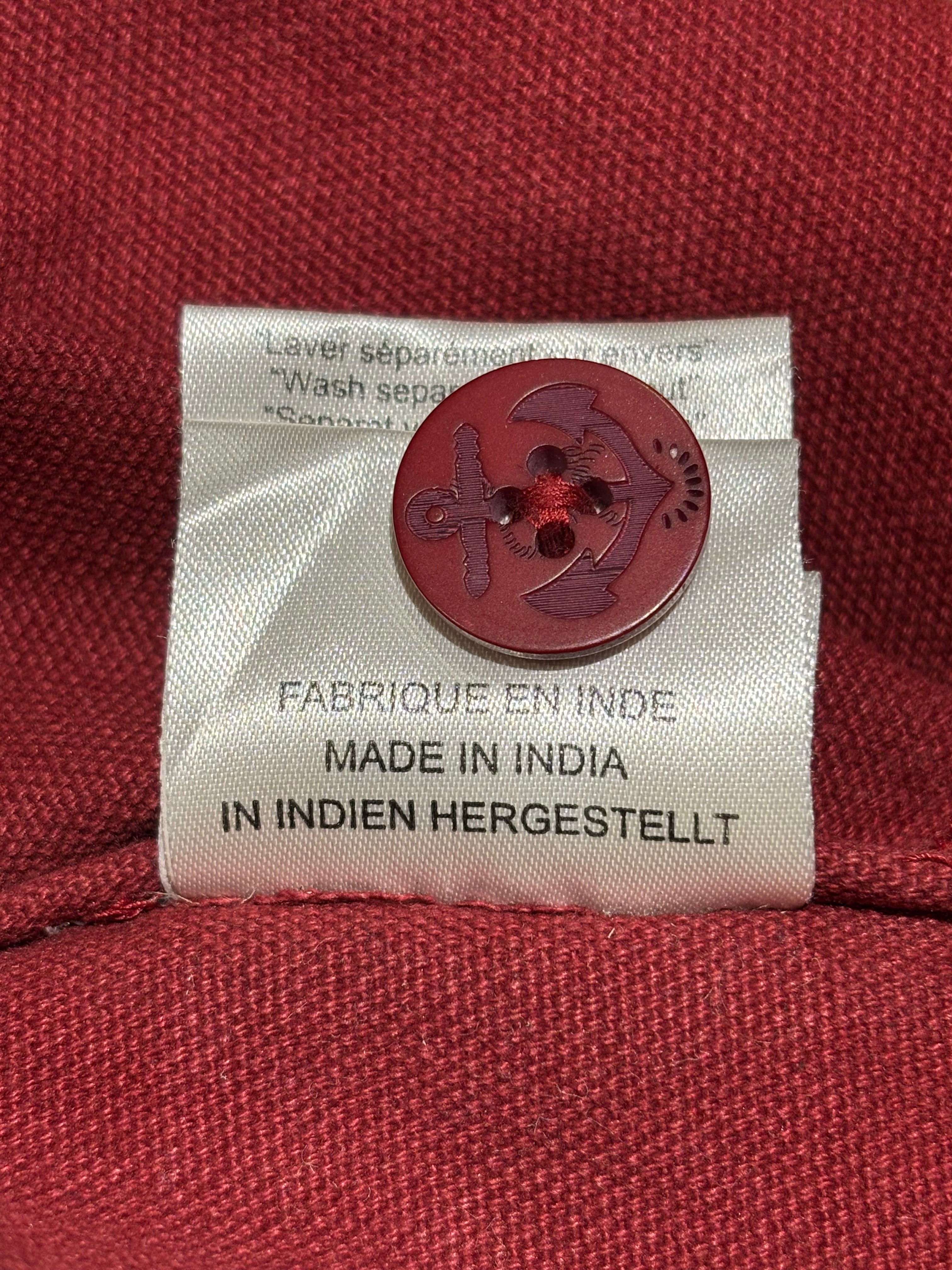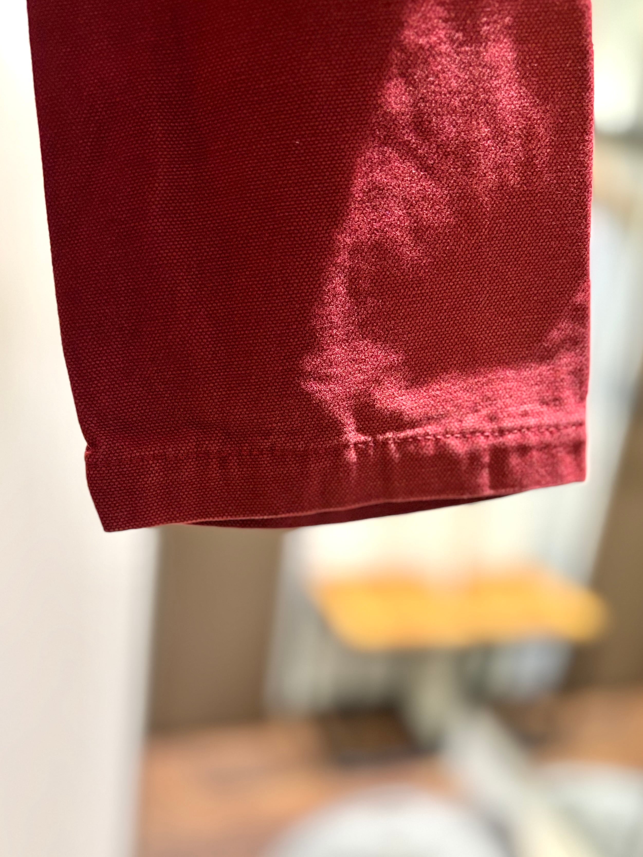 オンスのやや厚めな綿100%の平織り生地にエンジ色。
