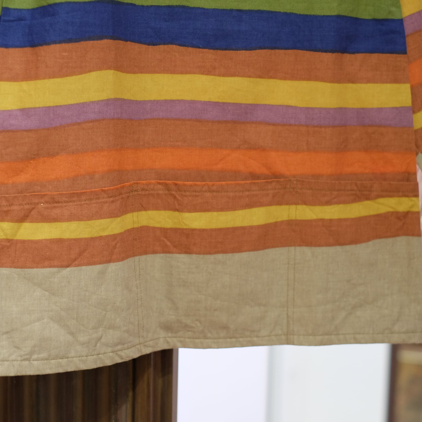 こちらは珍しいマルチボーダー柄で、通常の物より、ライトウェイトなコットン平織り素材。