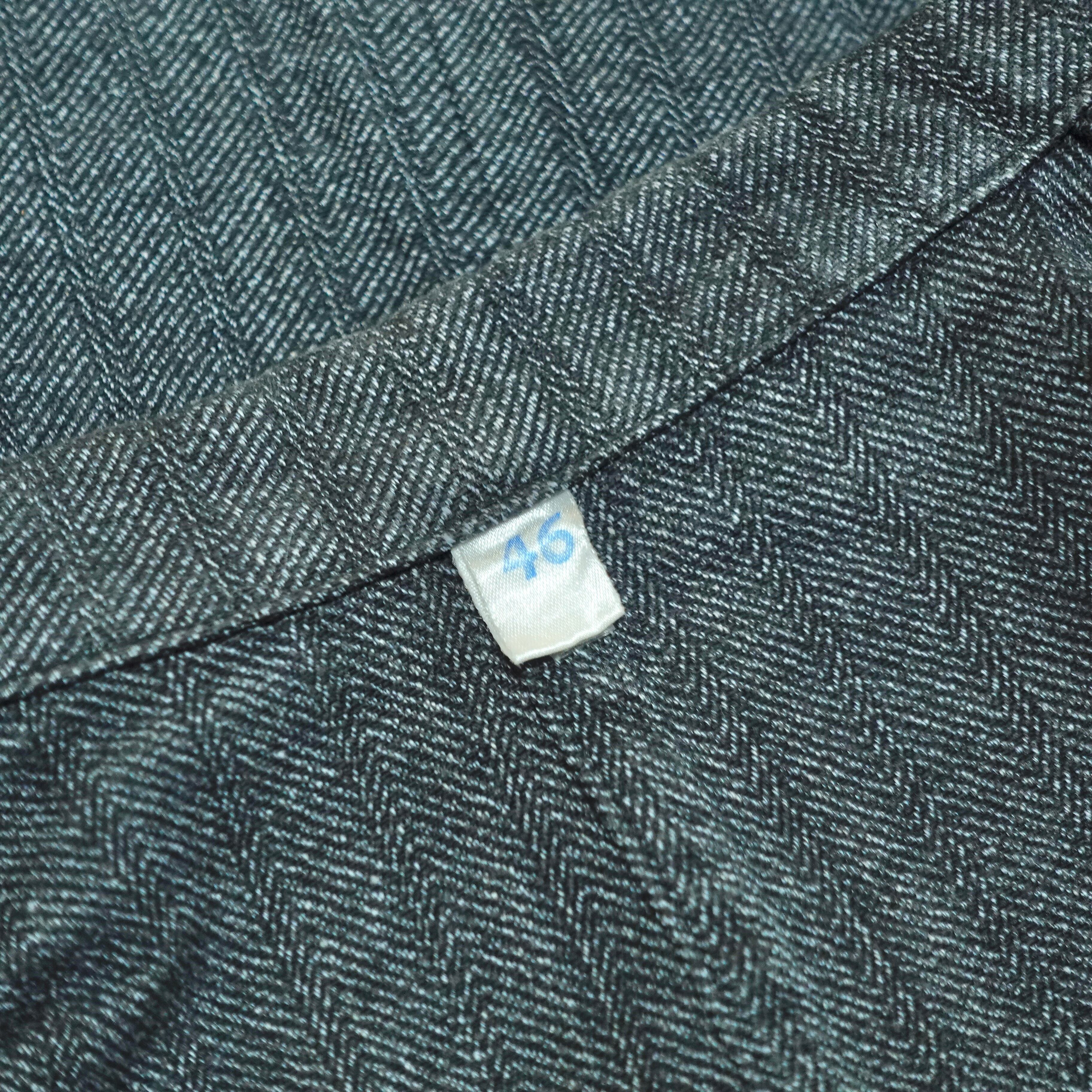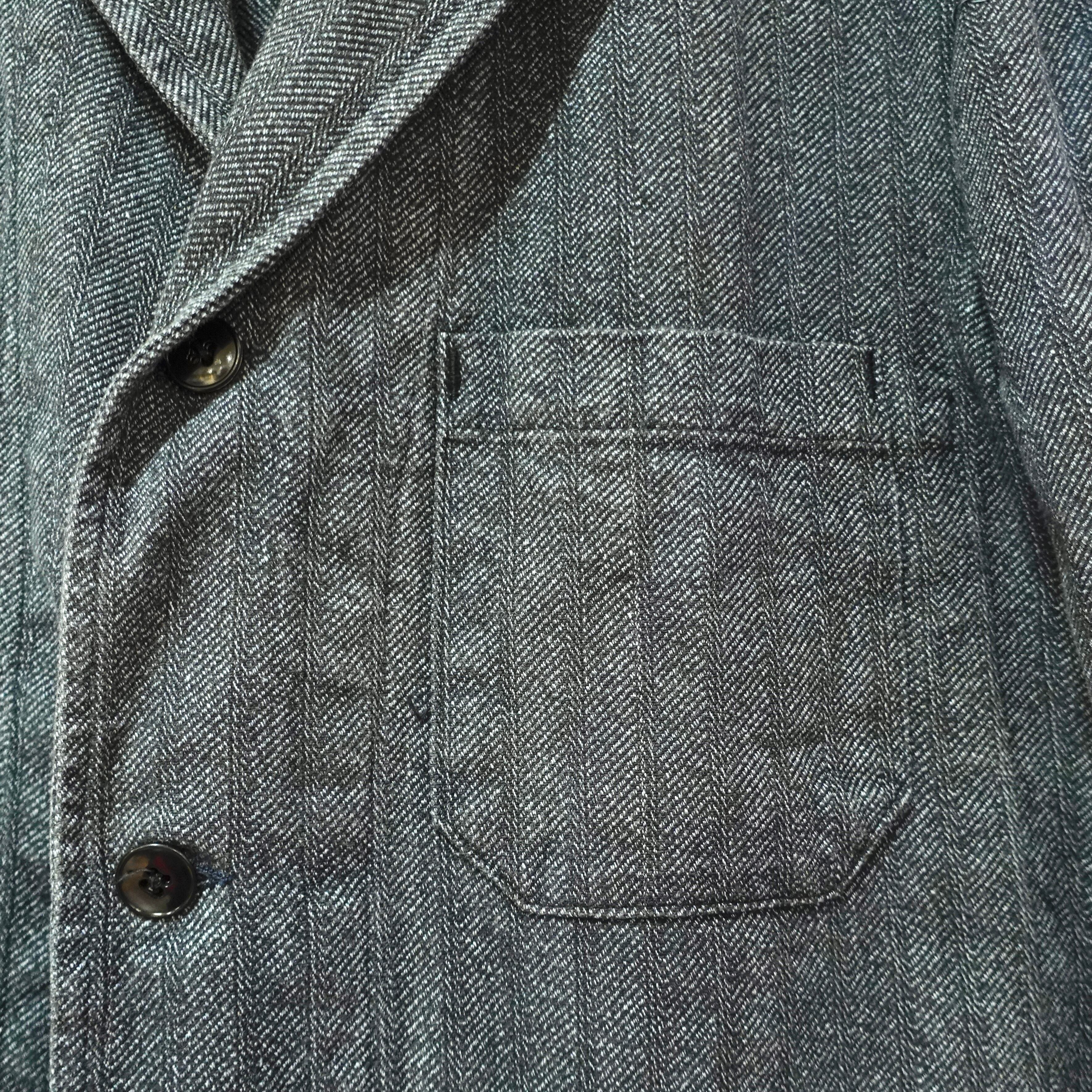 白黒のシャンブレーの様な風合いのある生地、ヘリンボーン織りで生地にしっかりと表情があるのも素晴らしいです。