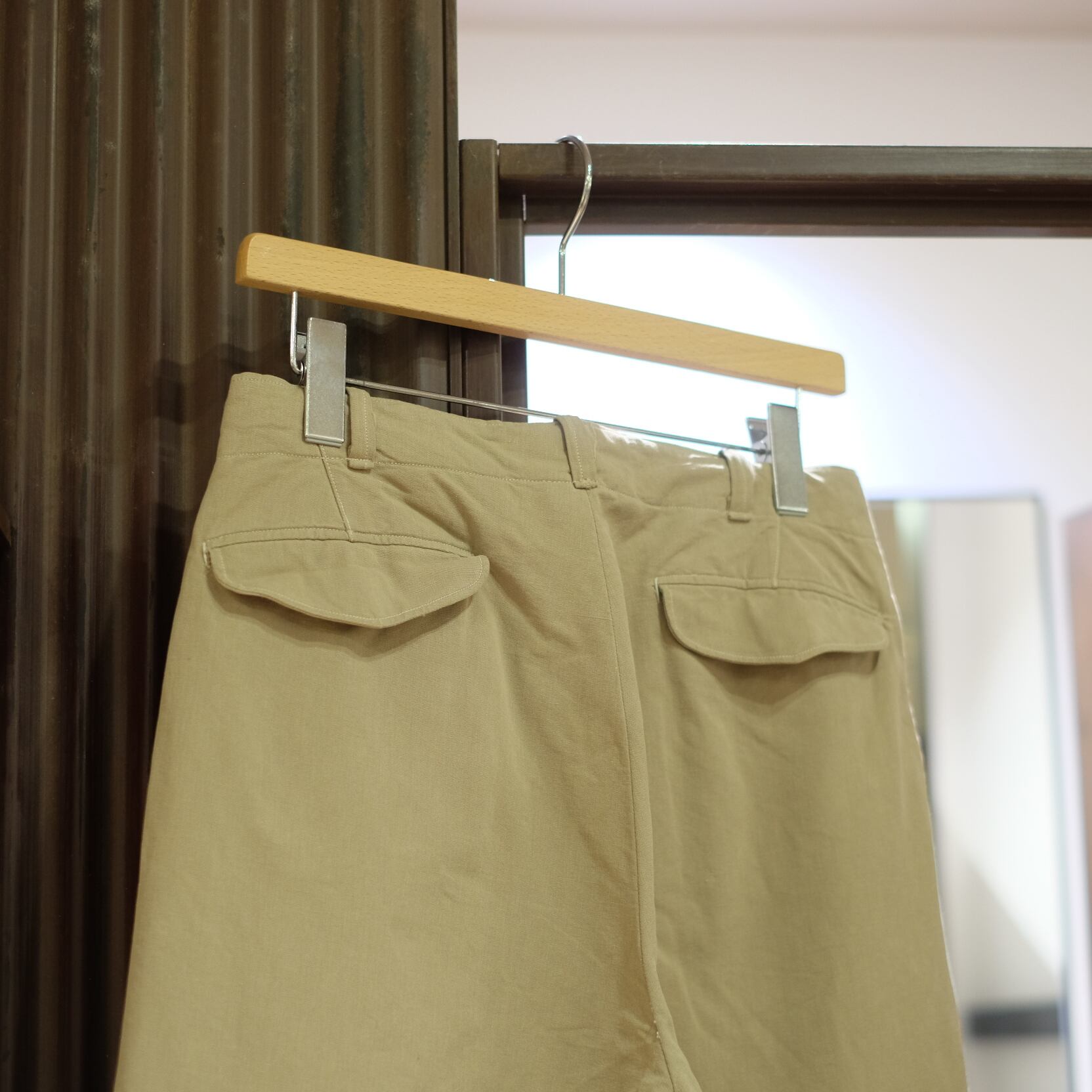 フロント2タックでややテーパードのかかるM52同様のデザインとシルエット。
