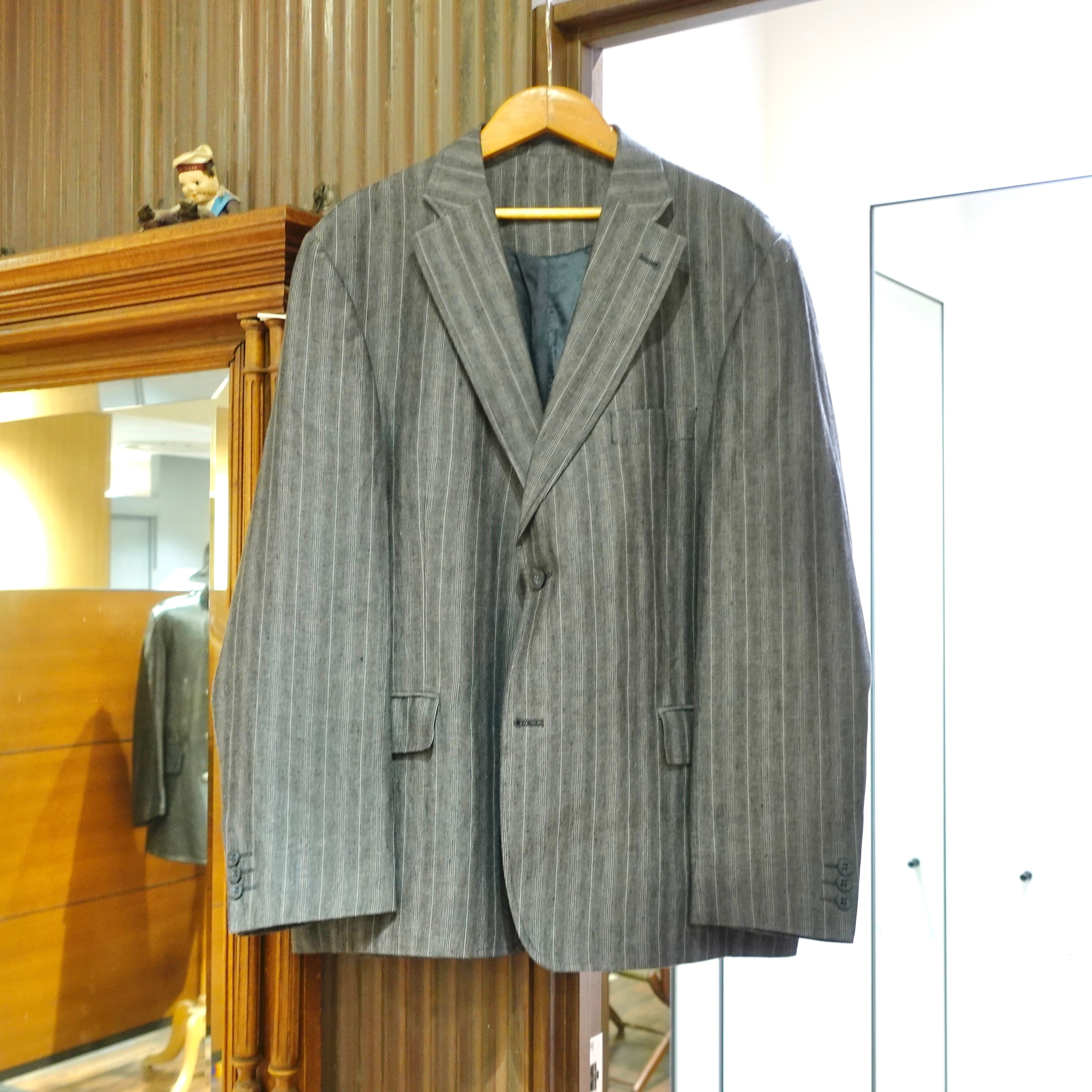 グレーベースに落ち着いたストライプ柄のクラシカルなデザインの1着。