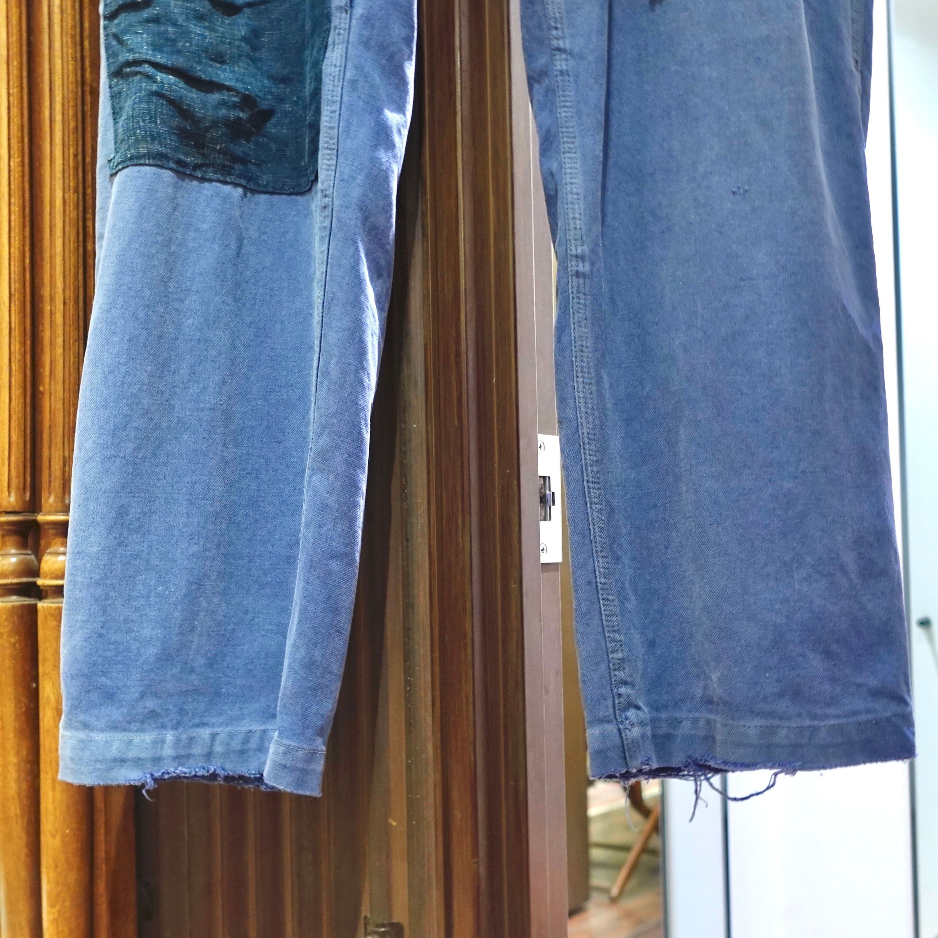 両膝にはインディゴリネンの生地が当てられており、贅沢な生地使いも魅力的です。