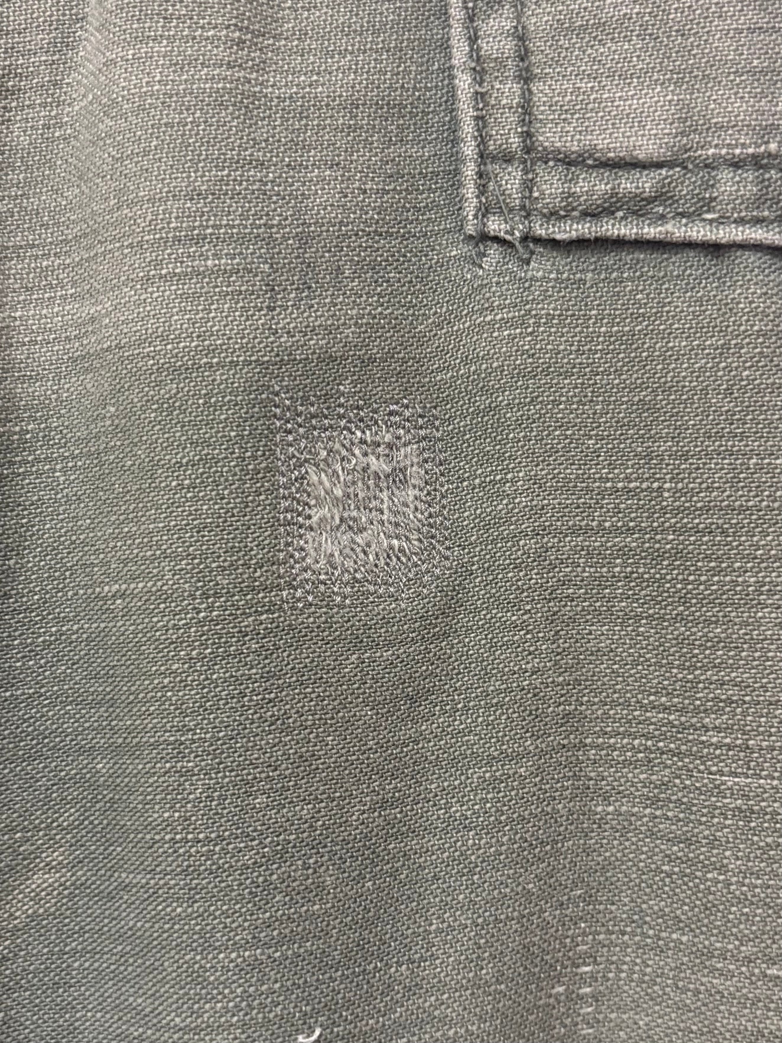 こちらはC100コットンサテン素材を使用したボタンフライの個体で、第一ボタンが変えられ、タグは欠損しております。