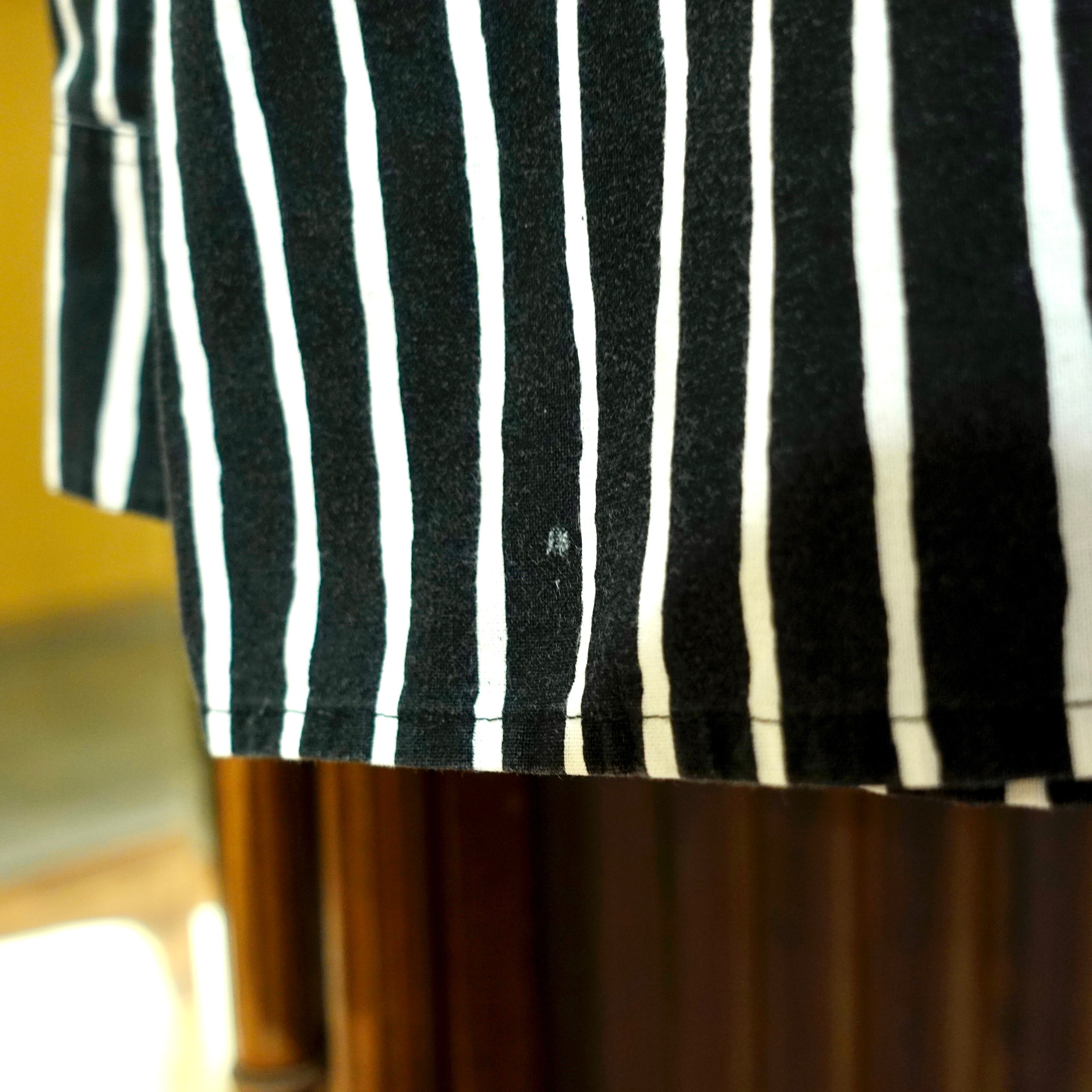 モノトーンからなるストライプ柄で派手さもあまり無く合わせのしやすい1着です。