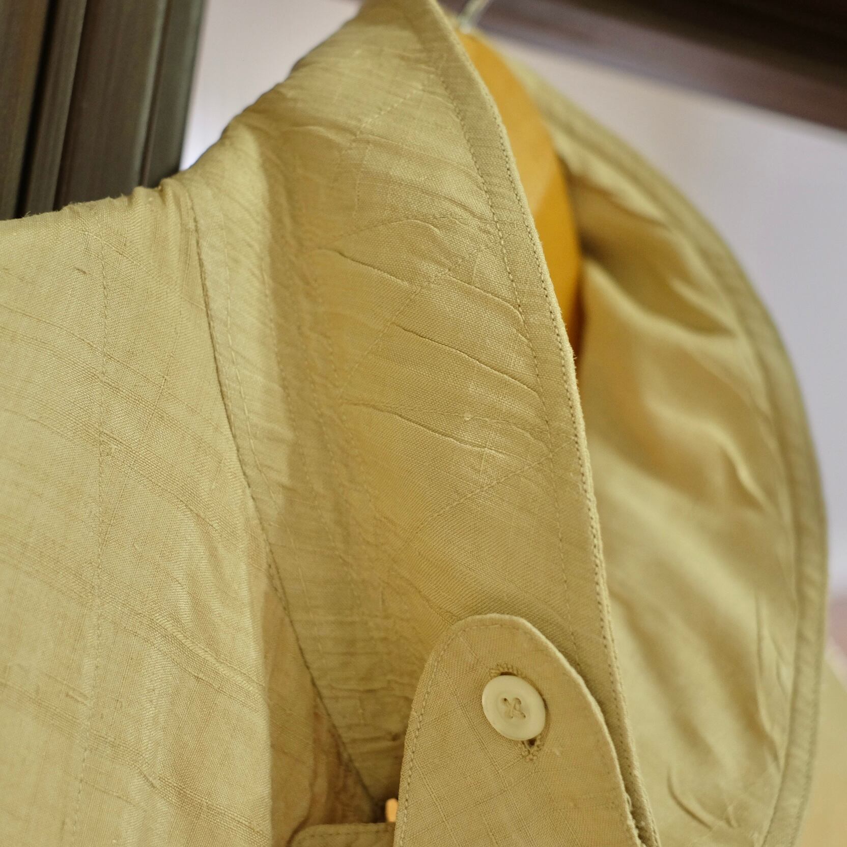 襟裏のステッチや大振りなシェルボタン、ハンドステッチのボタンホールなど古い時代のフレンチらしいディテールも魅力的です。