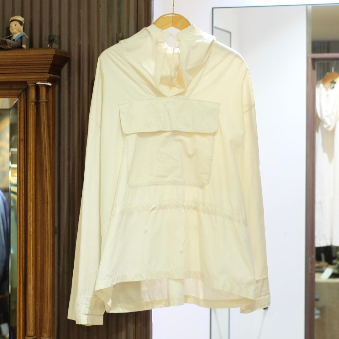 一体型の大きなフードや、フロント中央の大きな胸ポケットが良いデザインです。