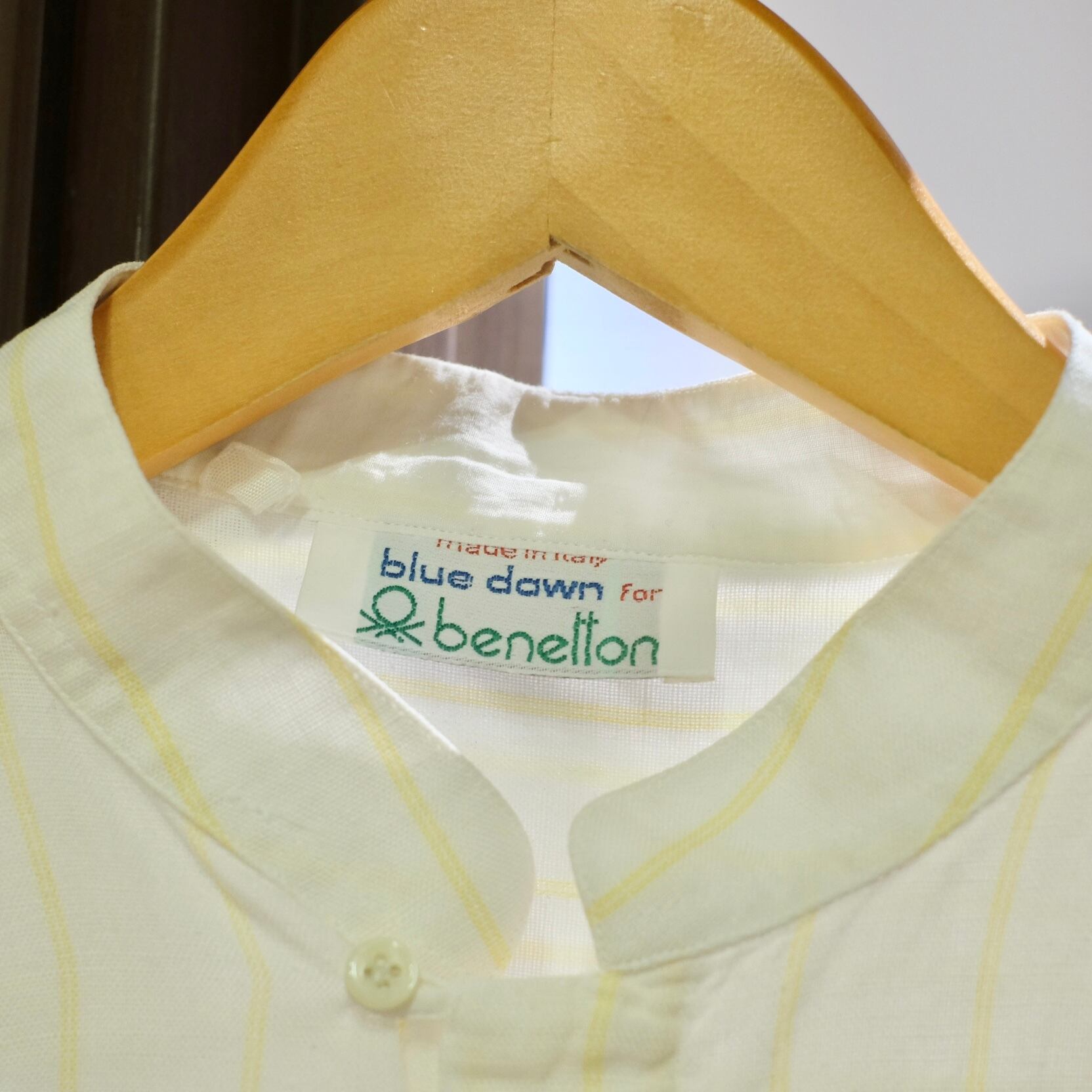 OLD benetton COTTON×LINEN STAND COLLAR HALF SLEEVE SHIRT