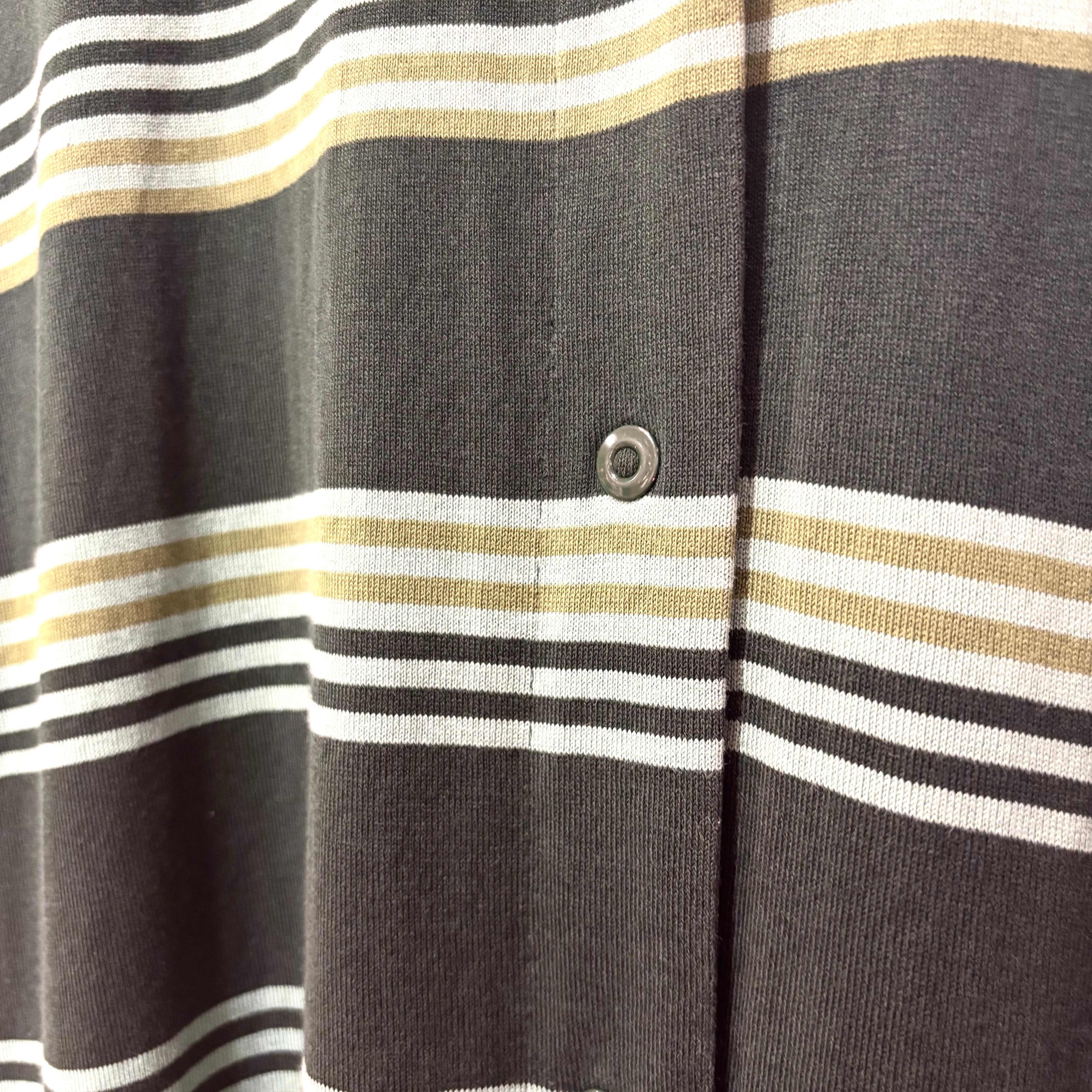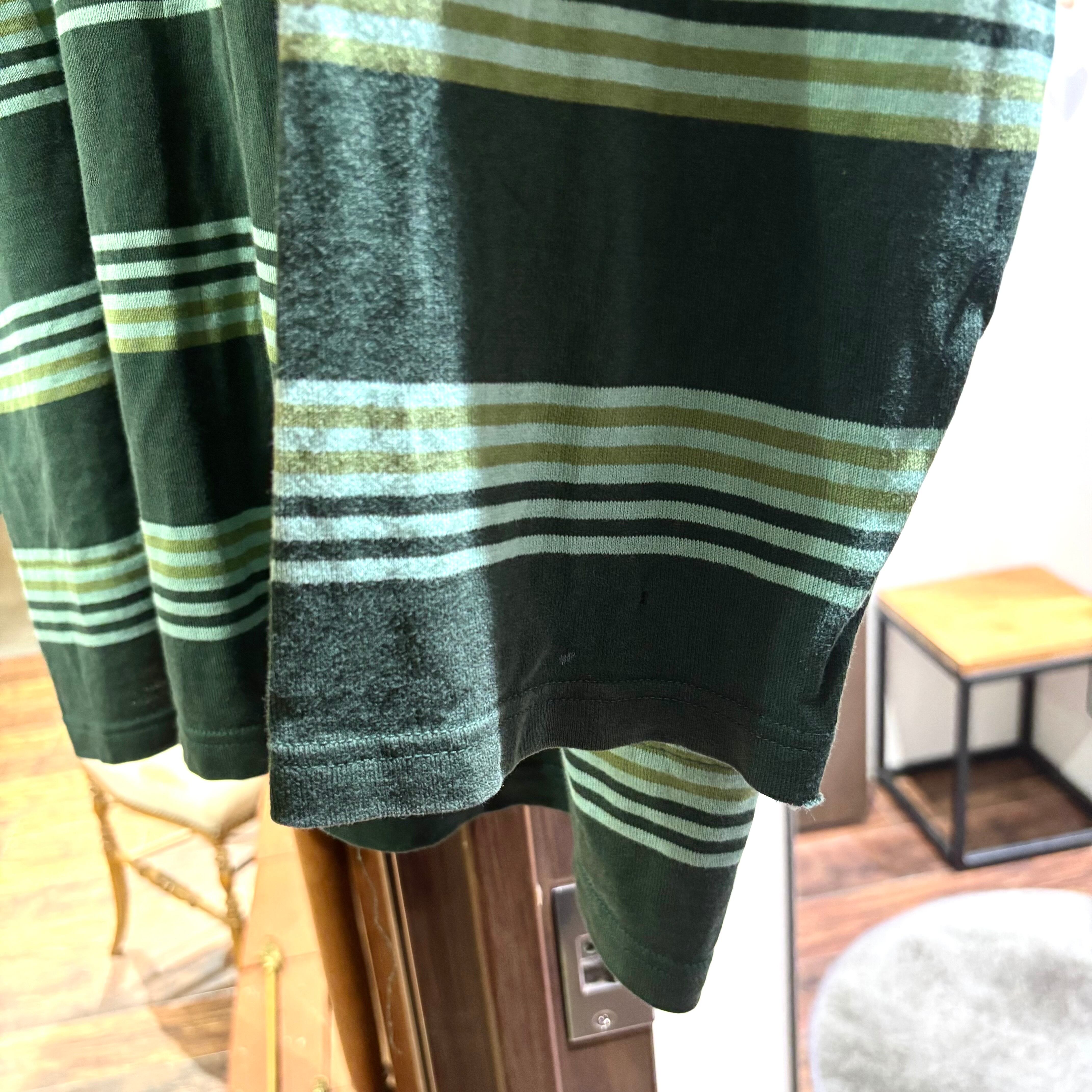 柔らかい天竺編みにグリーンベースのボーダー。なかなか見ないデザインかと。