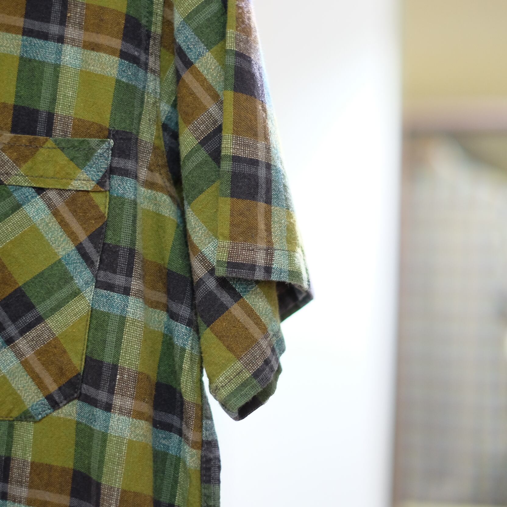 着丈長めなので半袖グランパのオープンカラー版とでも捉えていただければ合わせもしやすいかと。