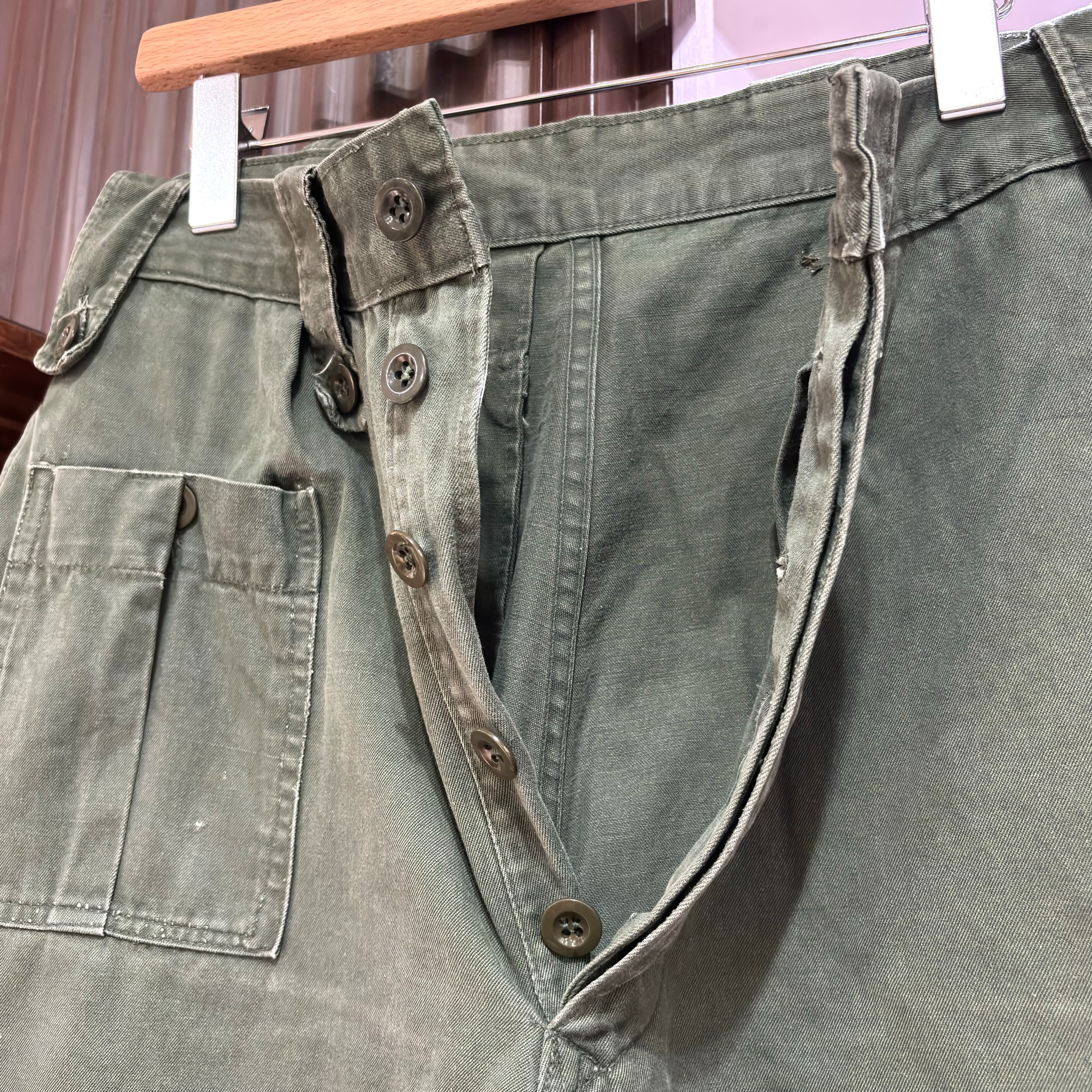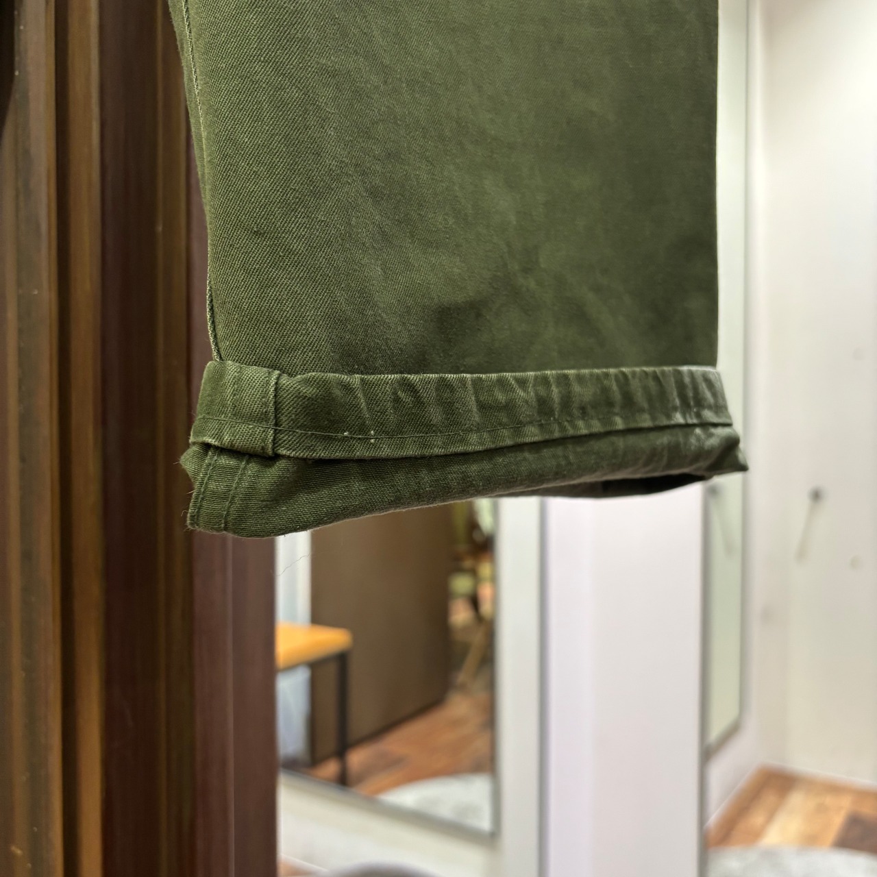 肉厚なツイル地にオリーブグリーン、イギリス軍を踏襲したマガジンポケットとマップポケットがつきます。ヒップのフラップポケットも嬉しいですね。