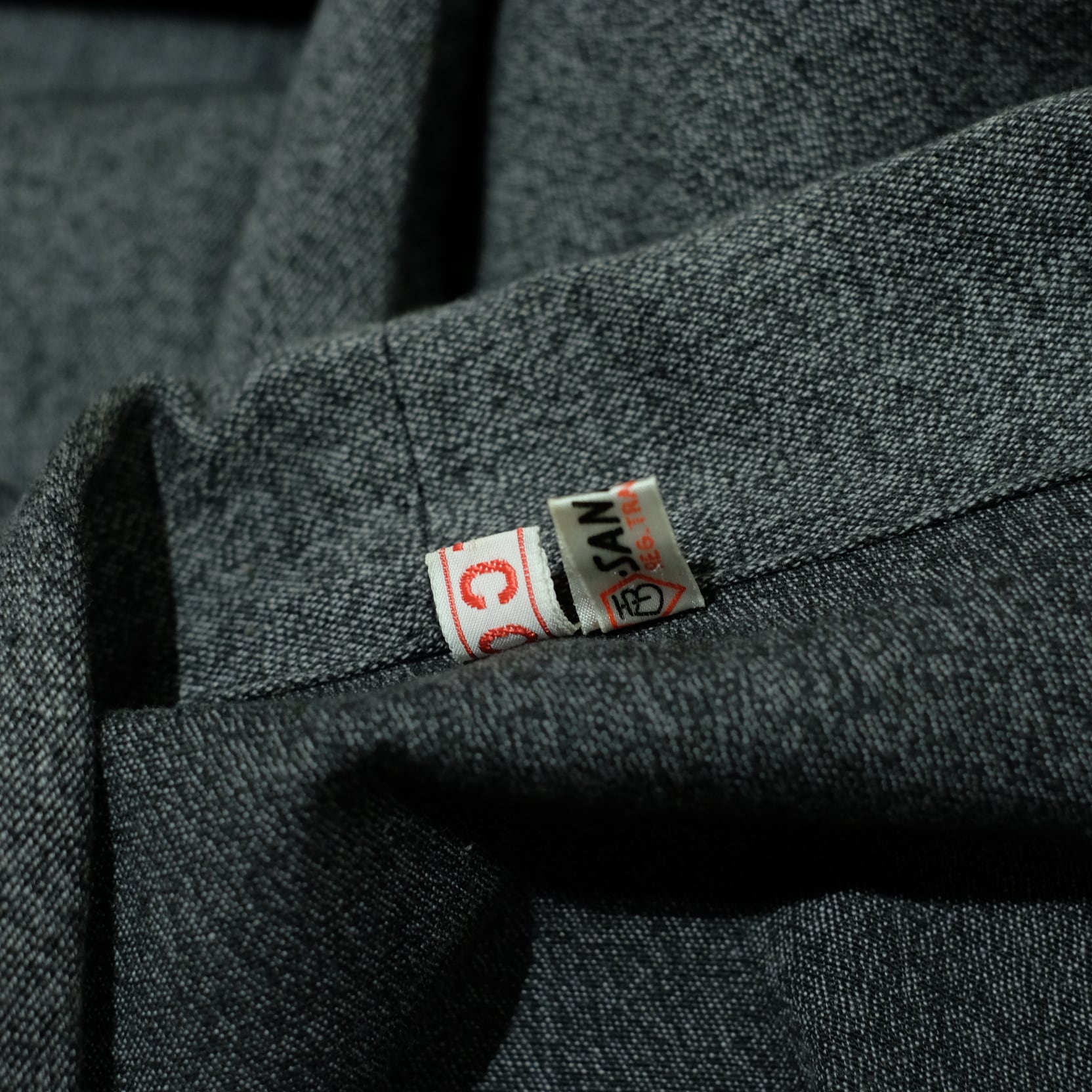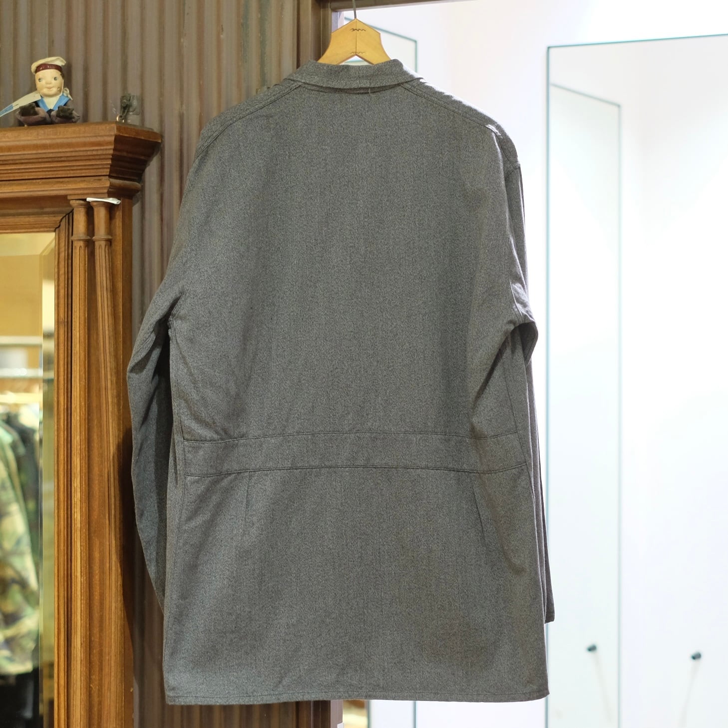 柔らかいソルトアンドペッパー生地でラペルタイプにマルタンガル、袖は筒袖とデイリーに着やすい仕様です。