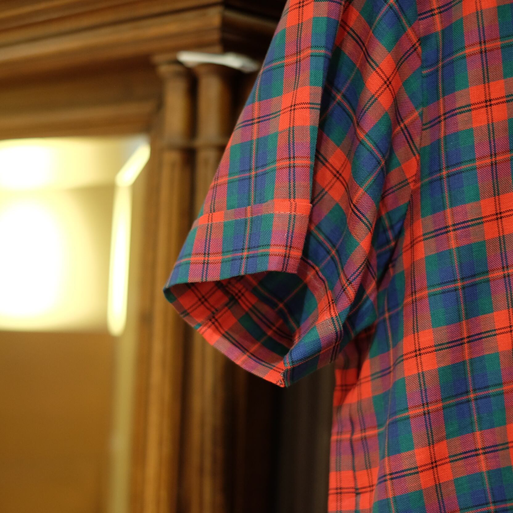 シャリっとしたコットン素材にレッド、グリーン、ブルーのチェック柄で、タータンの様な良い配色です。