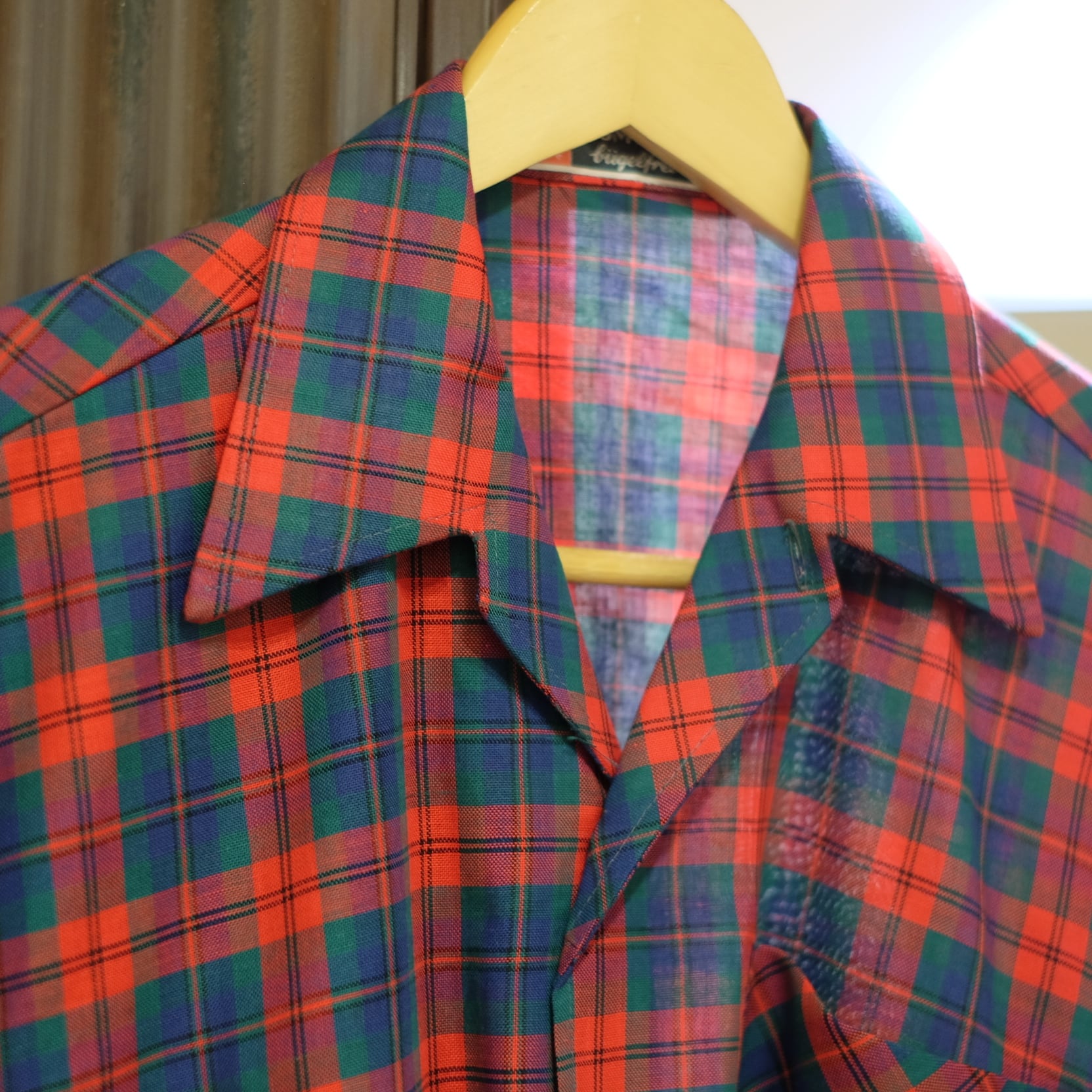 OLD CHECK COTTON OPEN COLLAR HALF SLEEVE SHIRT