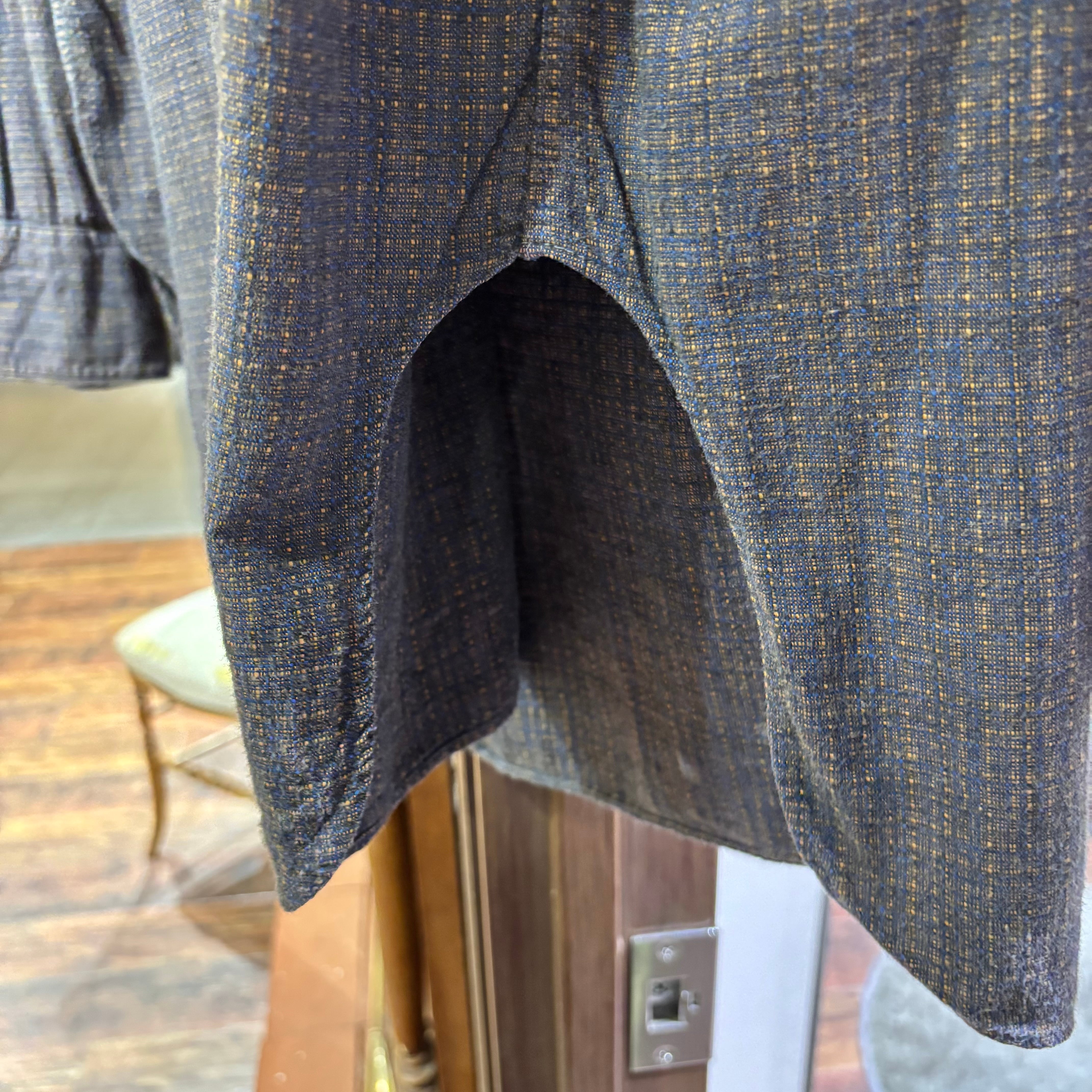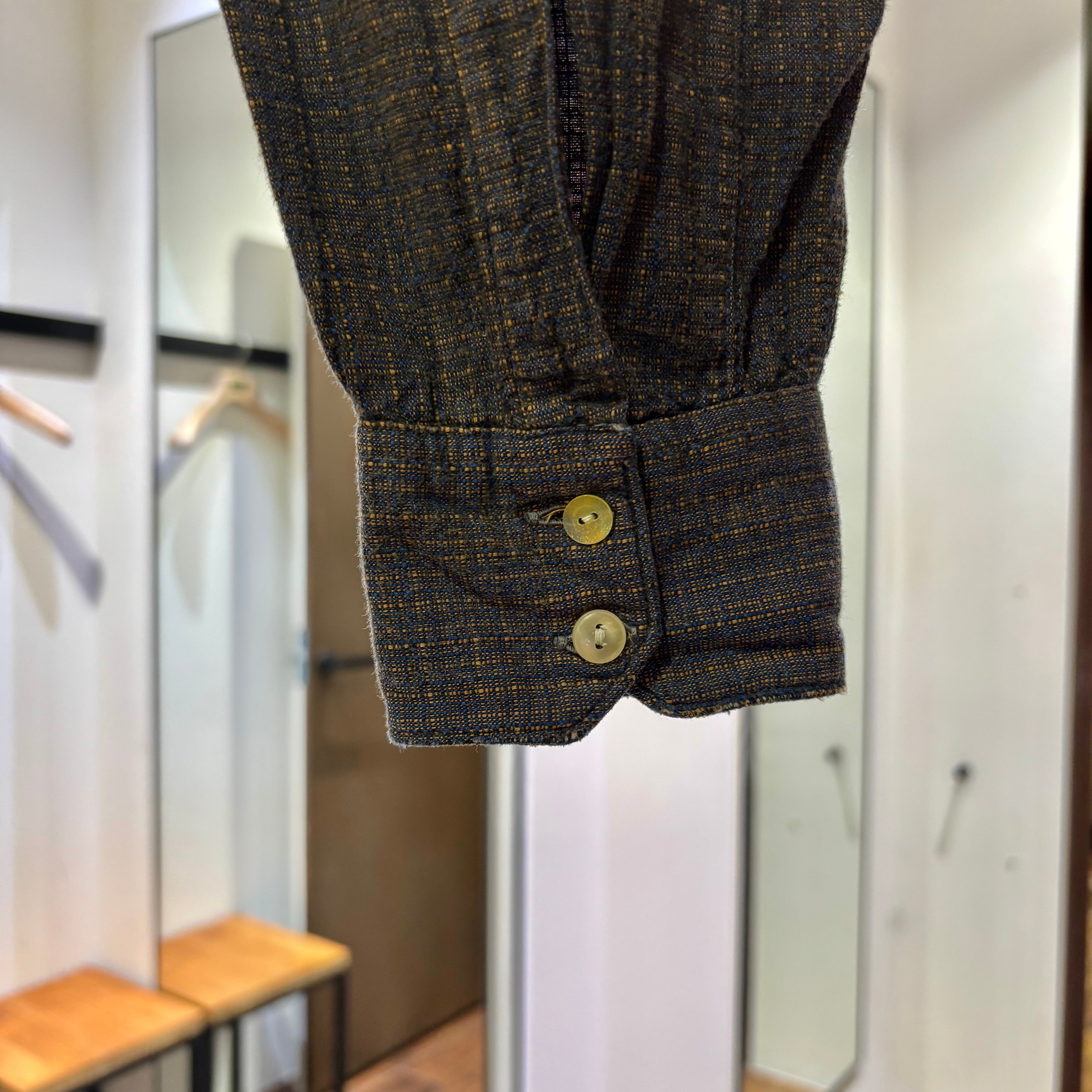 小さめセミワイドカラー、袖口の二連ボタン、大きく開いたスリットなど、各所のディテールも魅力的です。