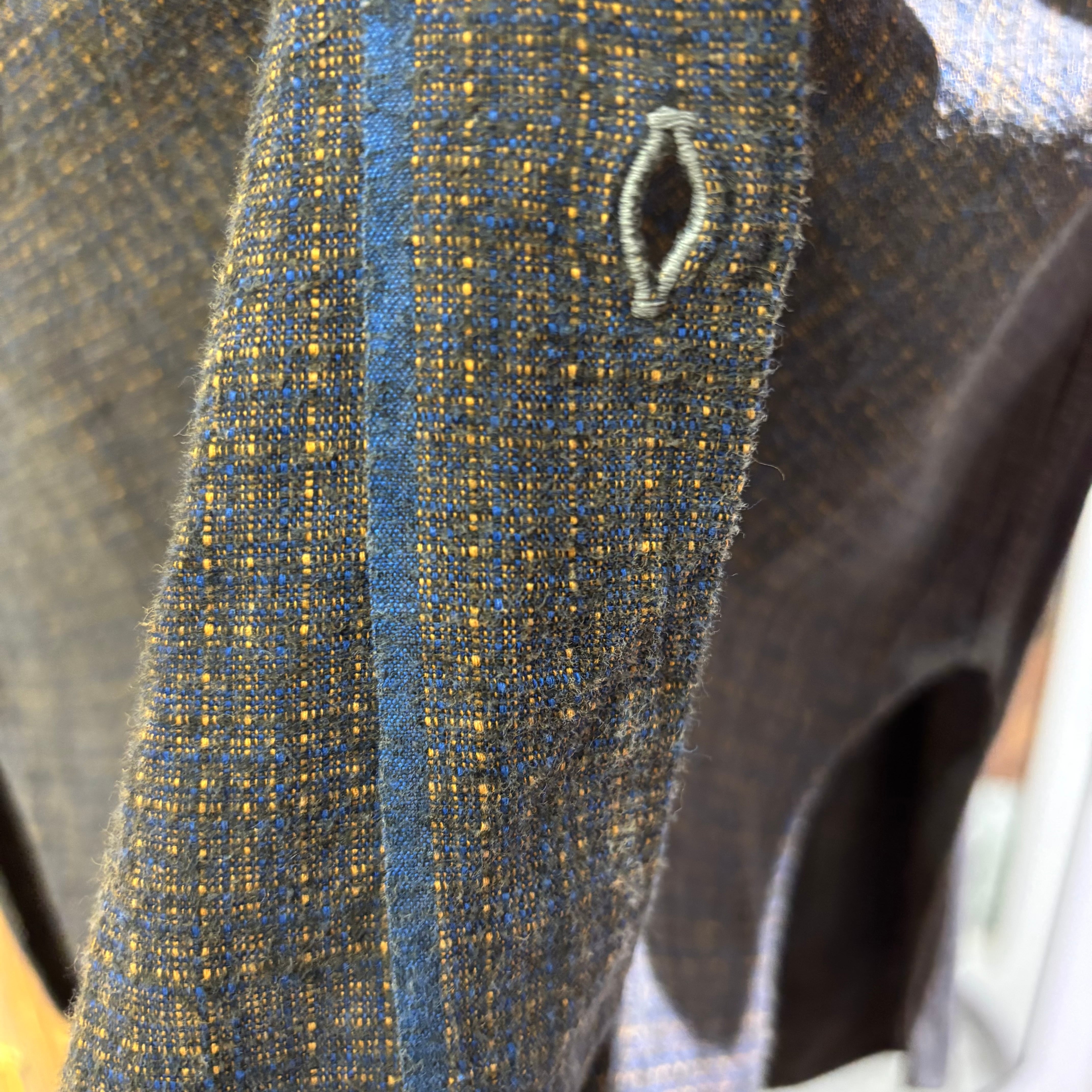 ブラック、ブルー、オレンジの三色織柄で、抜群に良い色味と生地感。