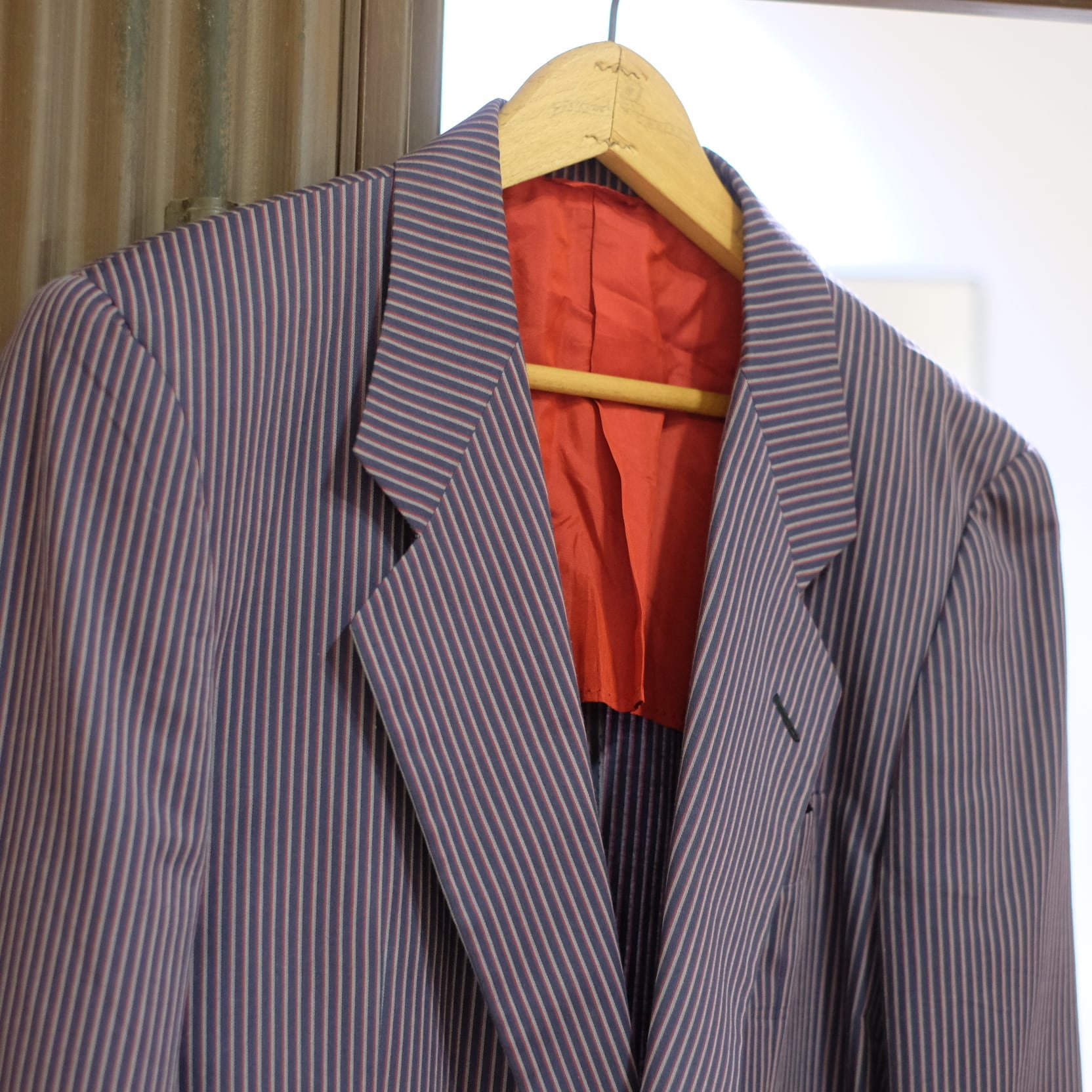 派手な生地に背抜き、パッチポケットとカジュアル色の強いディテールです。