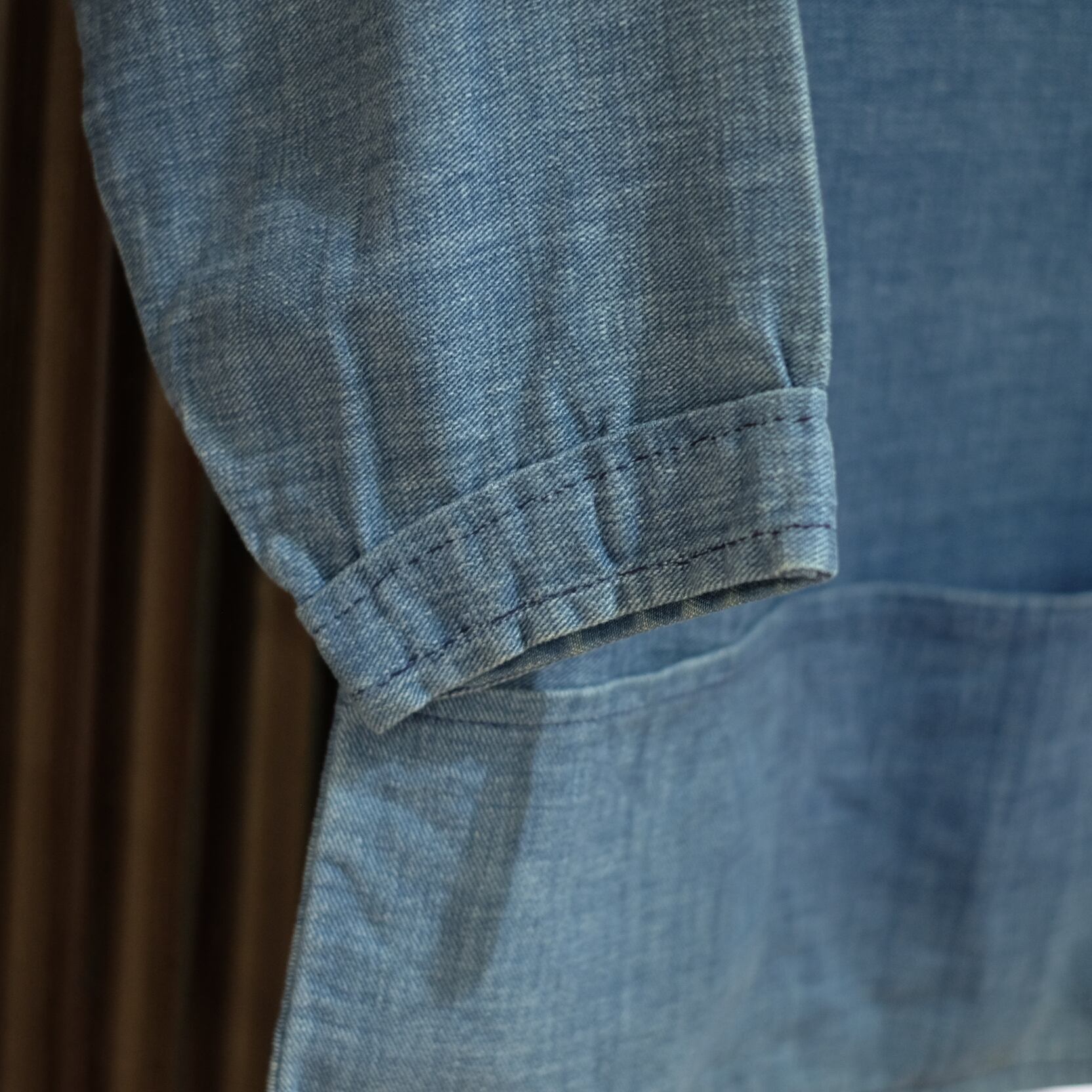 デニムの様に綺麗な色落ちをしたブルーカラーで、ブリティッシュらしいコットンドリル生地。