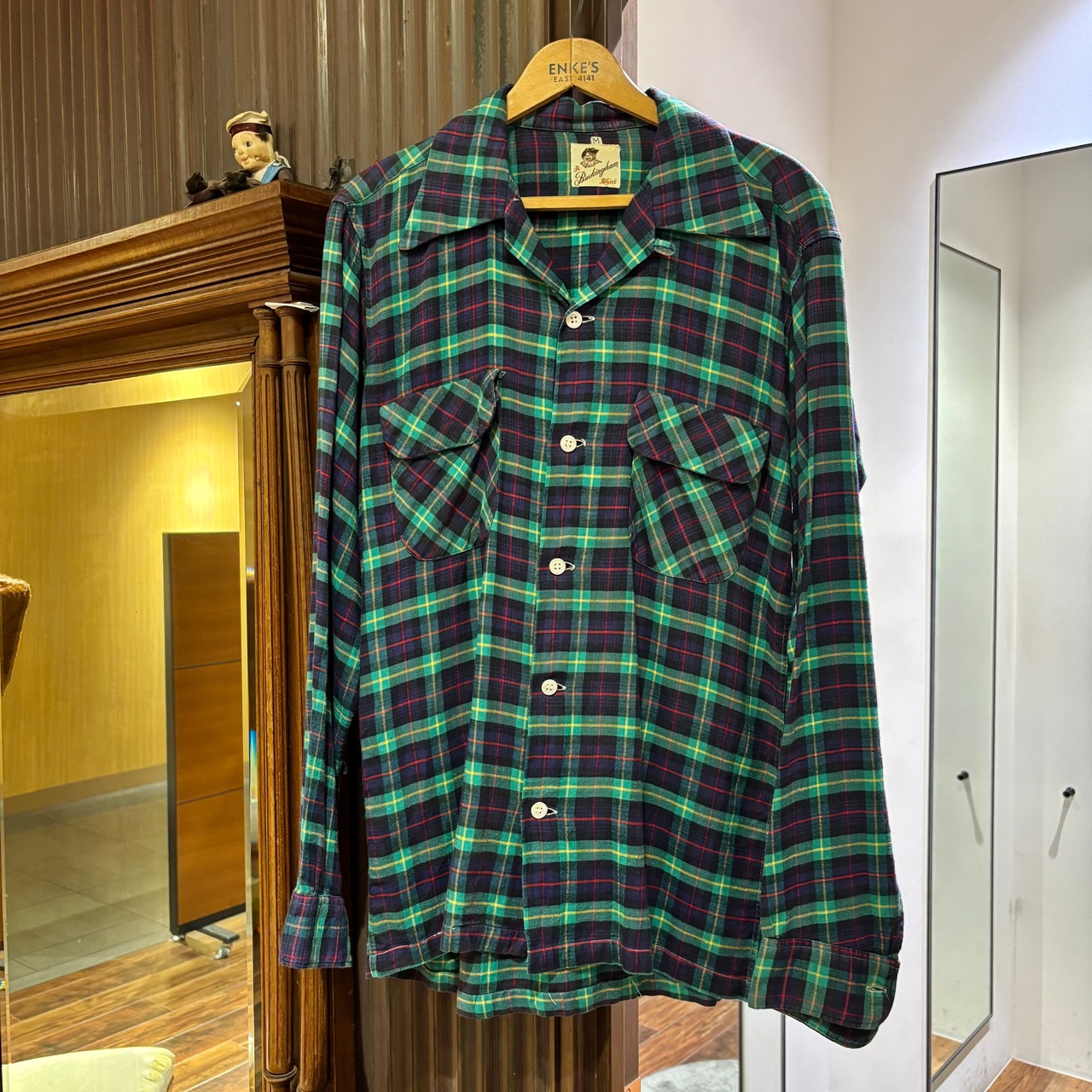 60年代以前イギリスメイドのオープンカラーシャツ。