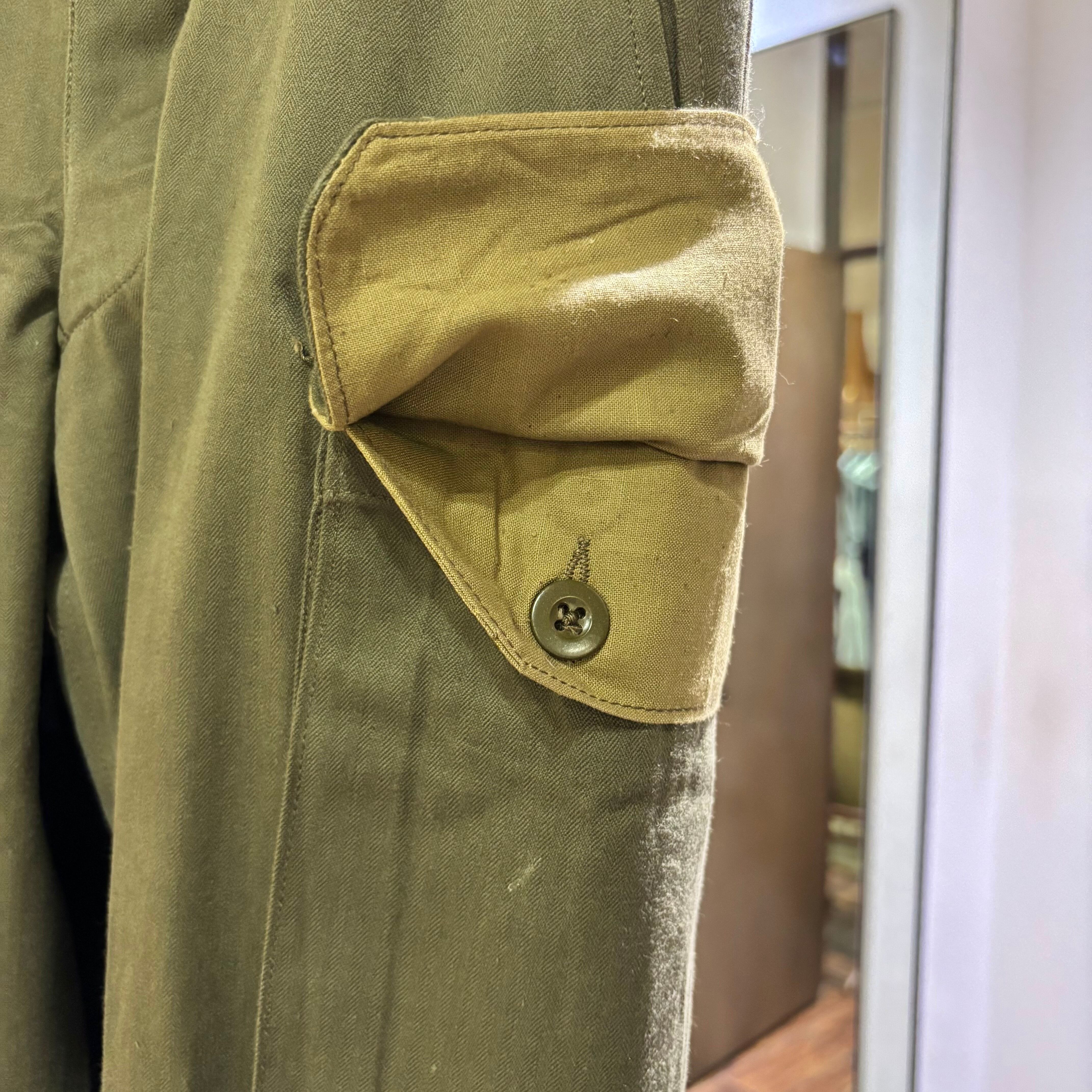 オリーブドラブのヘリンボーンツイルに後期らしいテーパードしたシルエット。