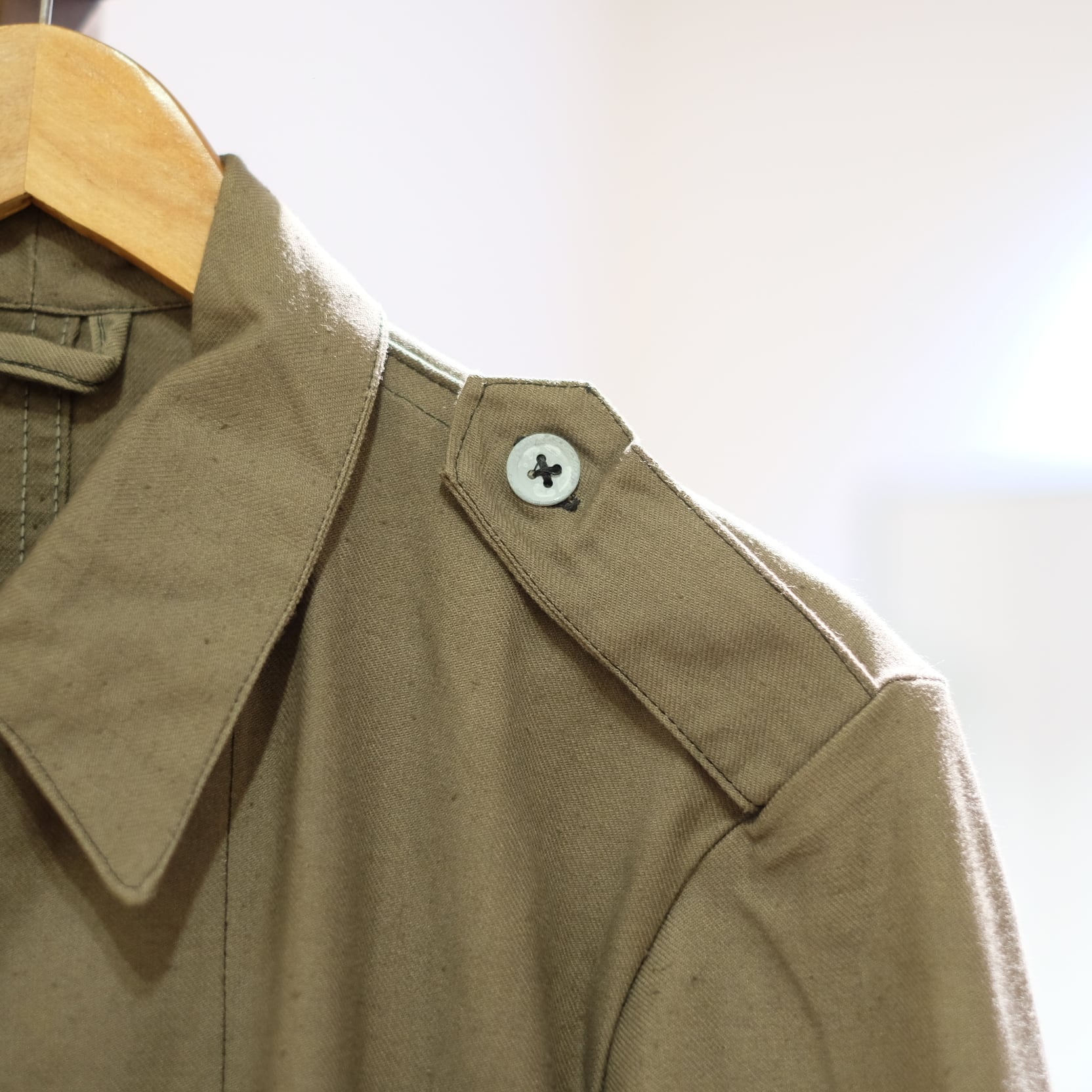 エポレットとフロントポケット、メタルボタンのシンプルな作りです。