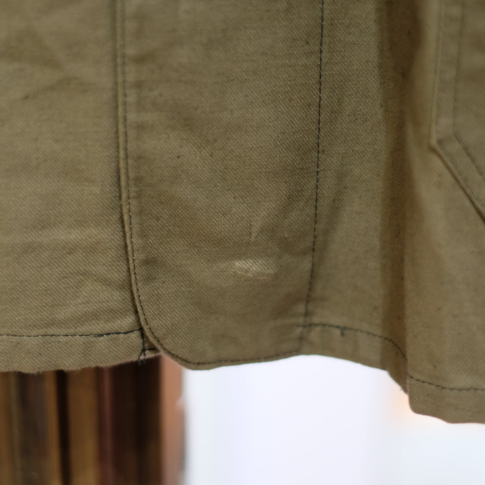 スウェーデン軍にしては控えめなグレーカラーに、年代らしいネップ感のあるコットンドリル生地。