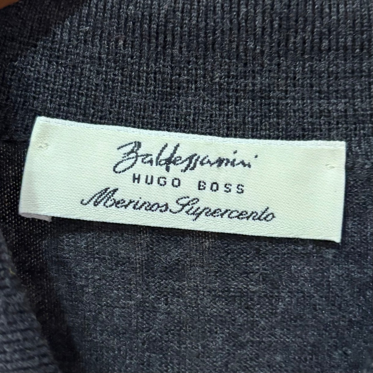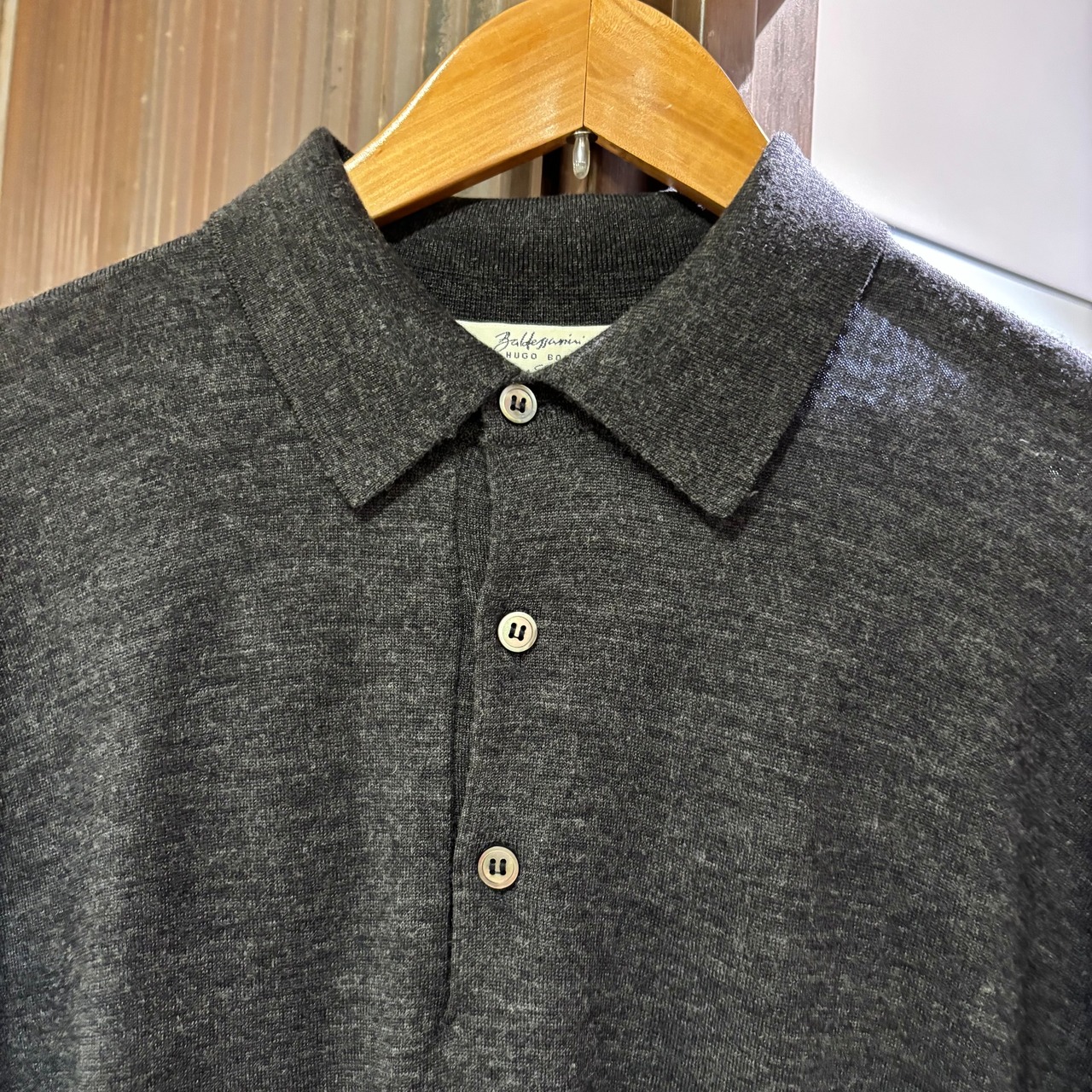 HUGO BOSSのハイゲージのニットポロシャツ。大きめの作りのためジャストサイズよりもややゆとりをもって選んで頂くとカッコよくお召し頂けます。