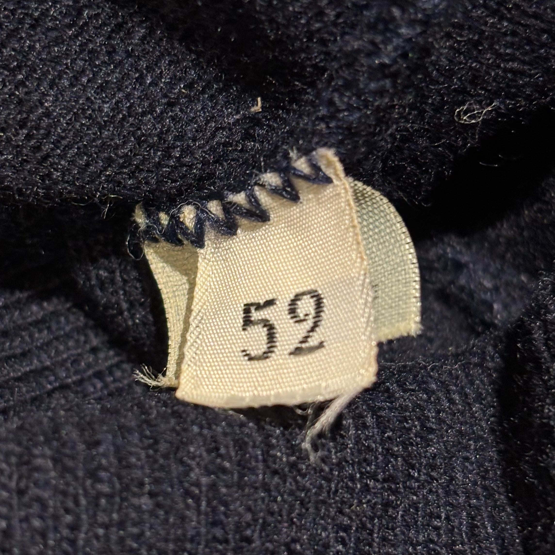 暗めのダークネイビーカラーで表記52の大きめサイズ。
