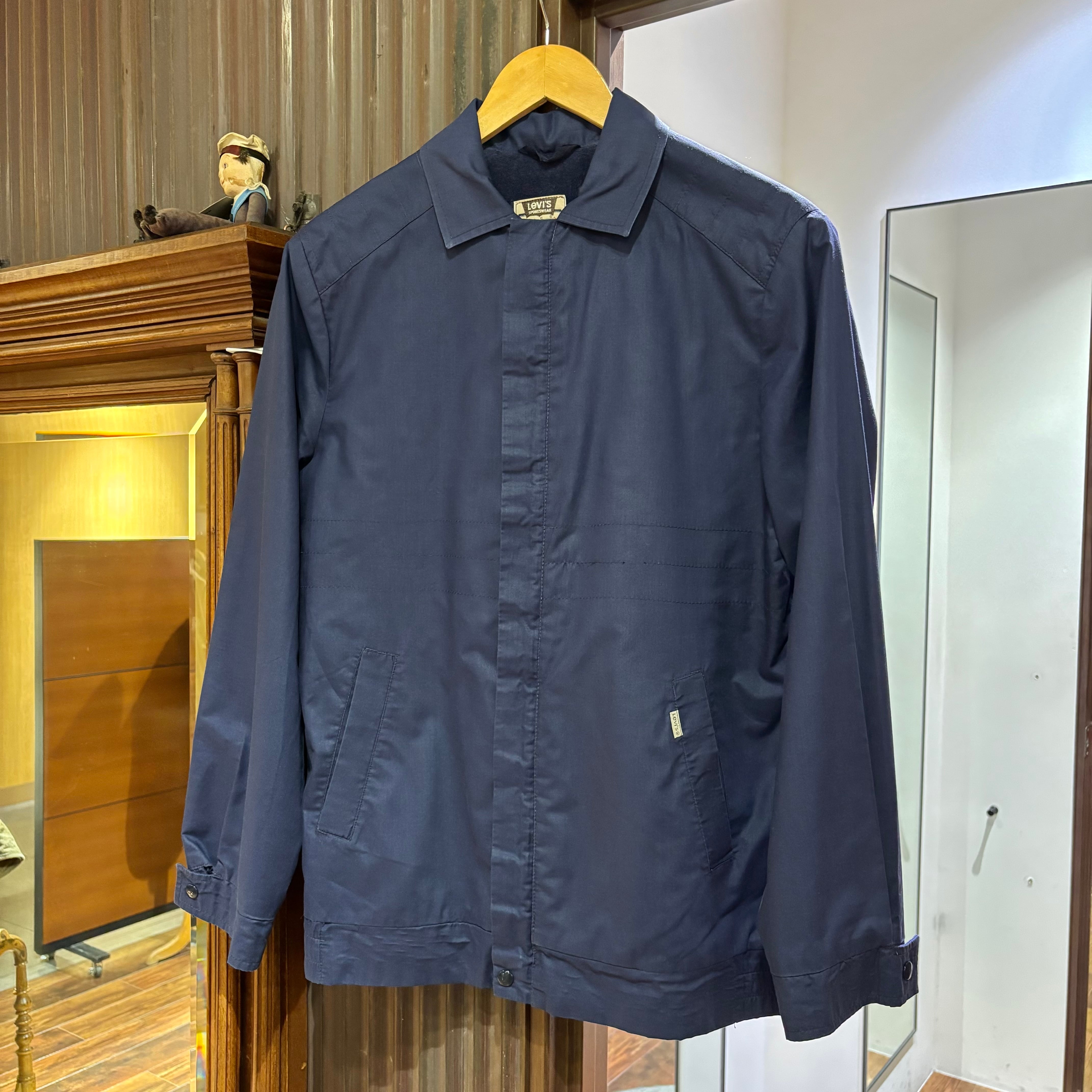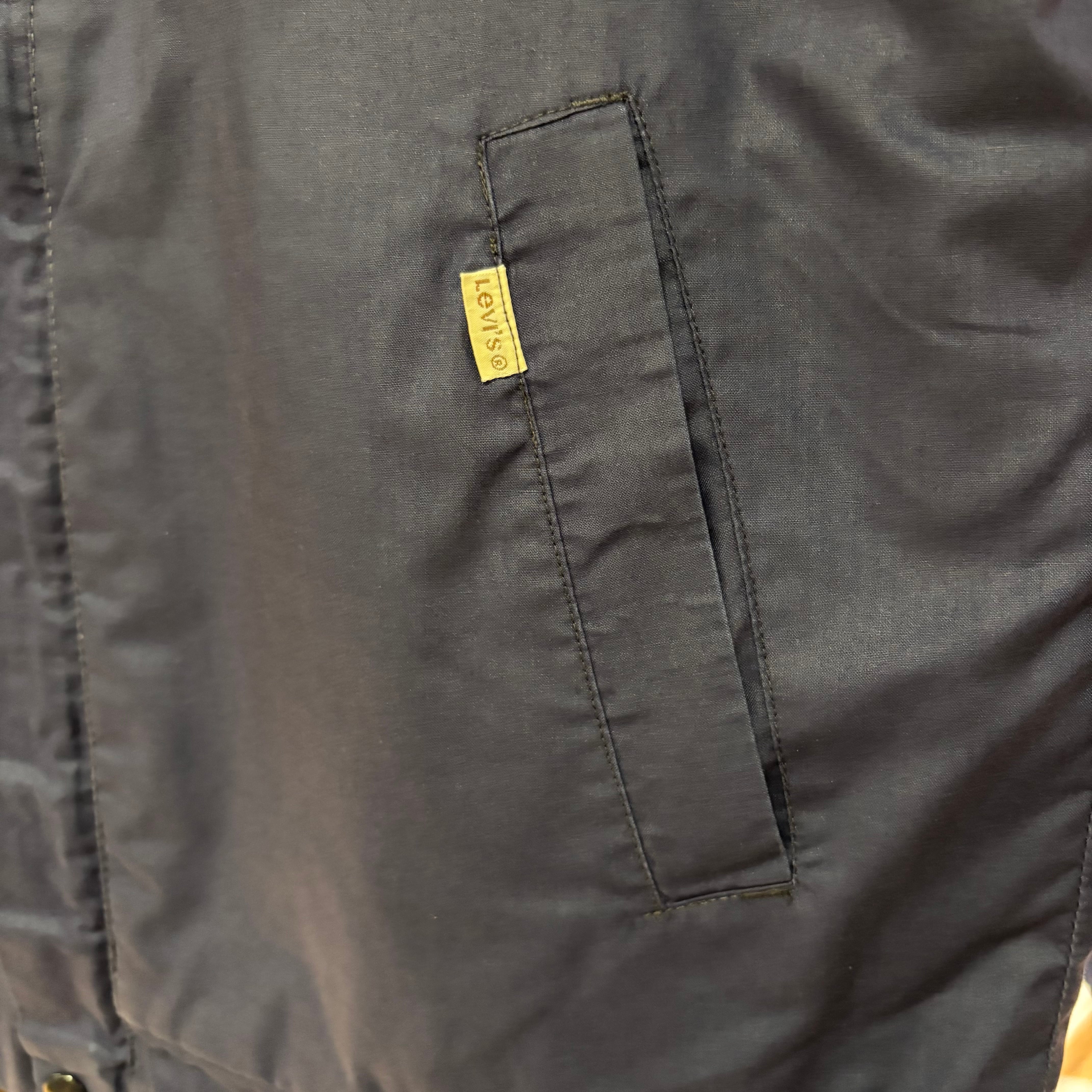 ネイビーカラーのコットンナイロン生地で、裏地はフリース付きの暖かい1着。