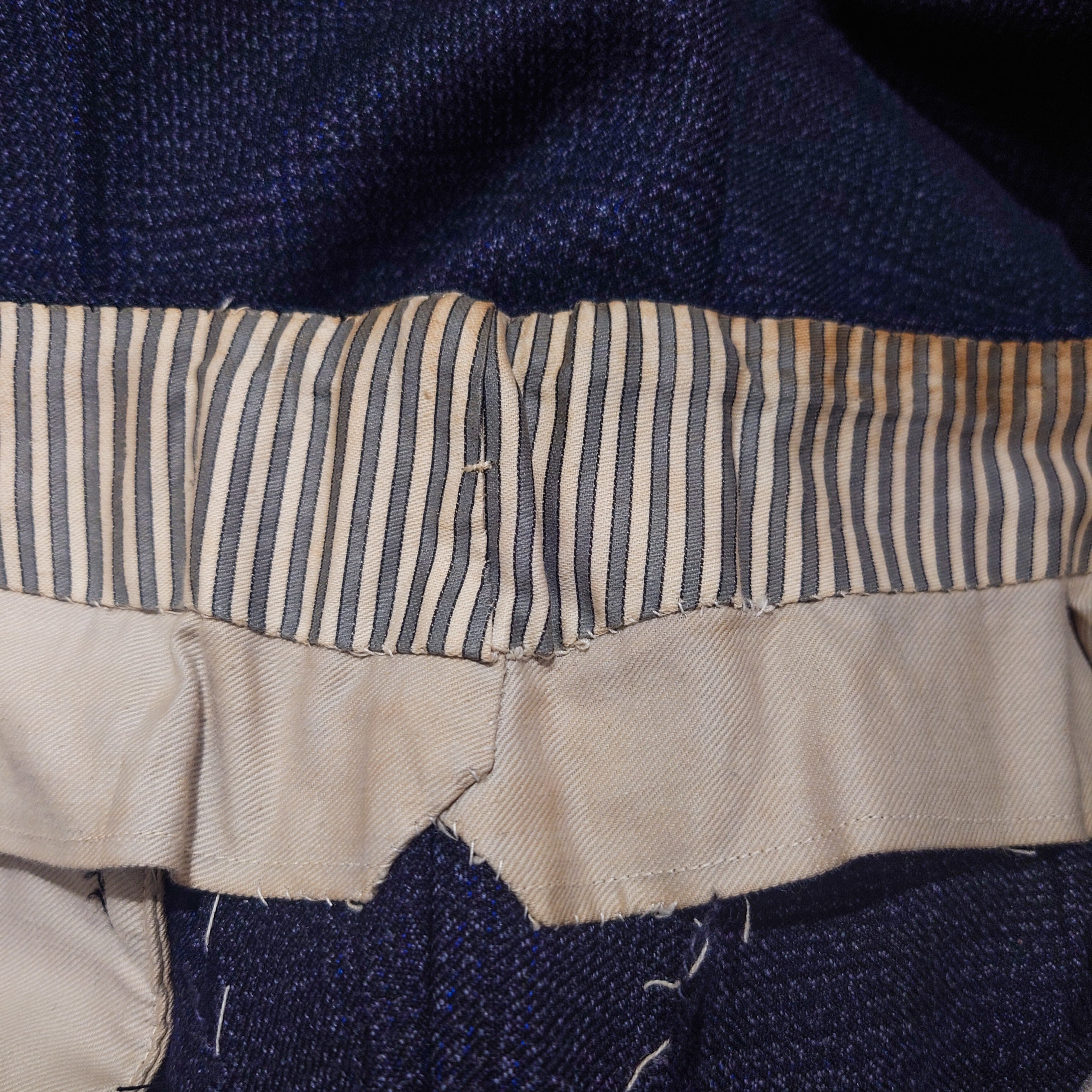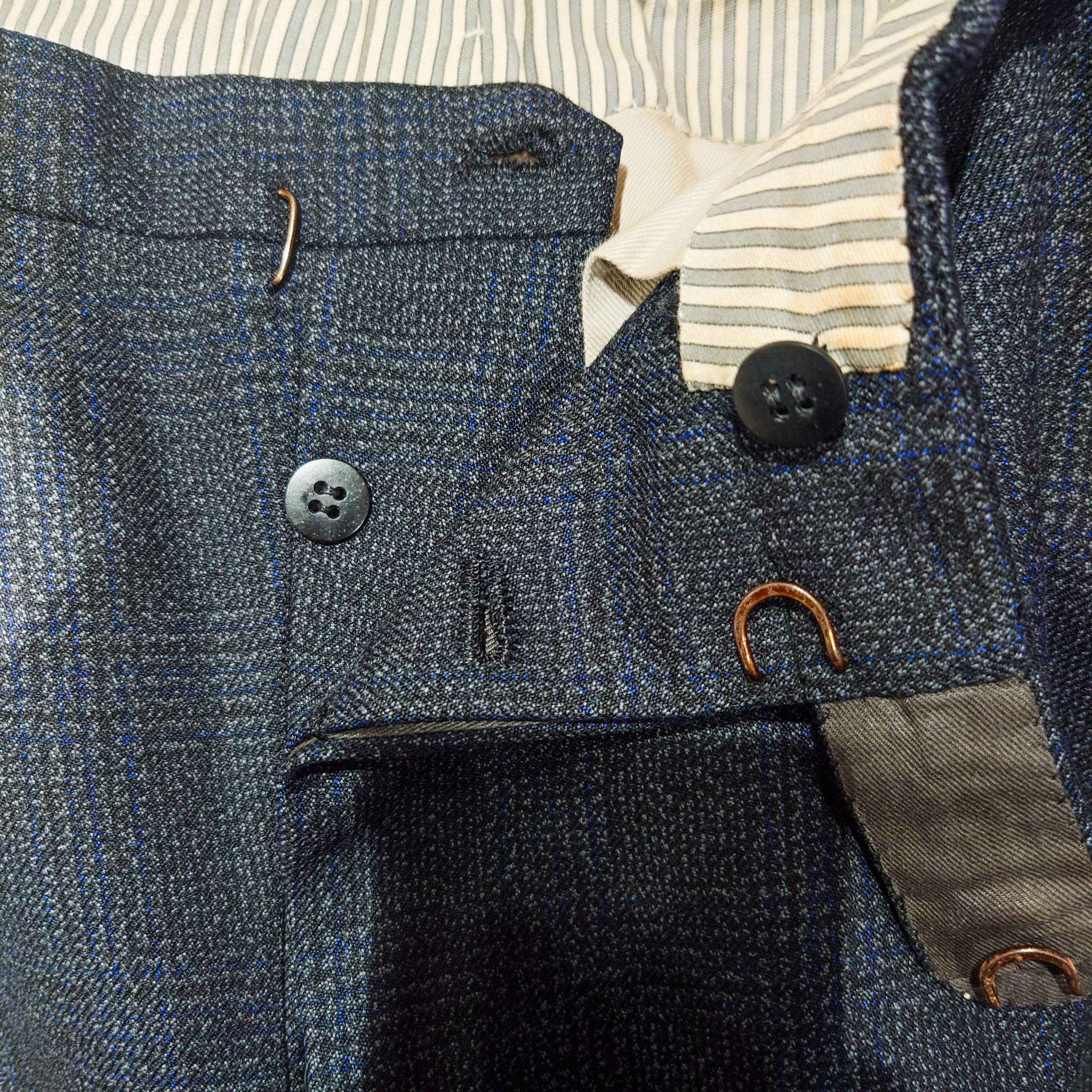 玉縁のポケットや、ボタンフライにフックが付く点、裾の補強テープなど、嬉しいディテールもございます。