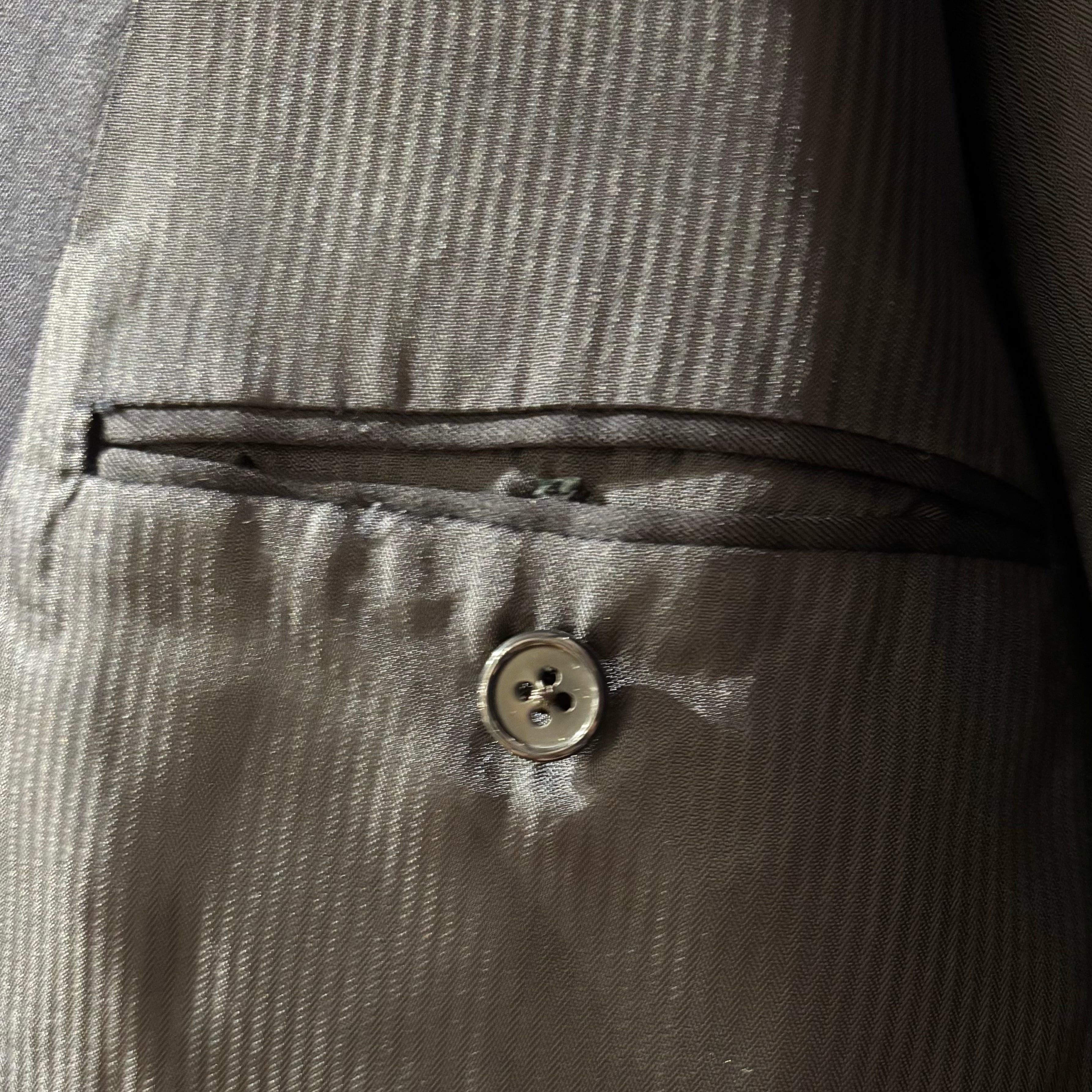 ラペル周りやフラップは手縫いの凝ったつくりで、ポケットは両玉縁。