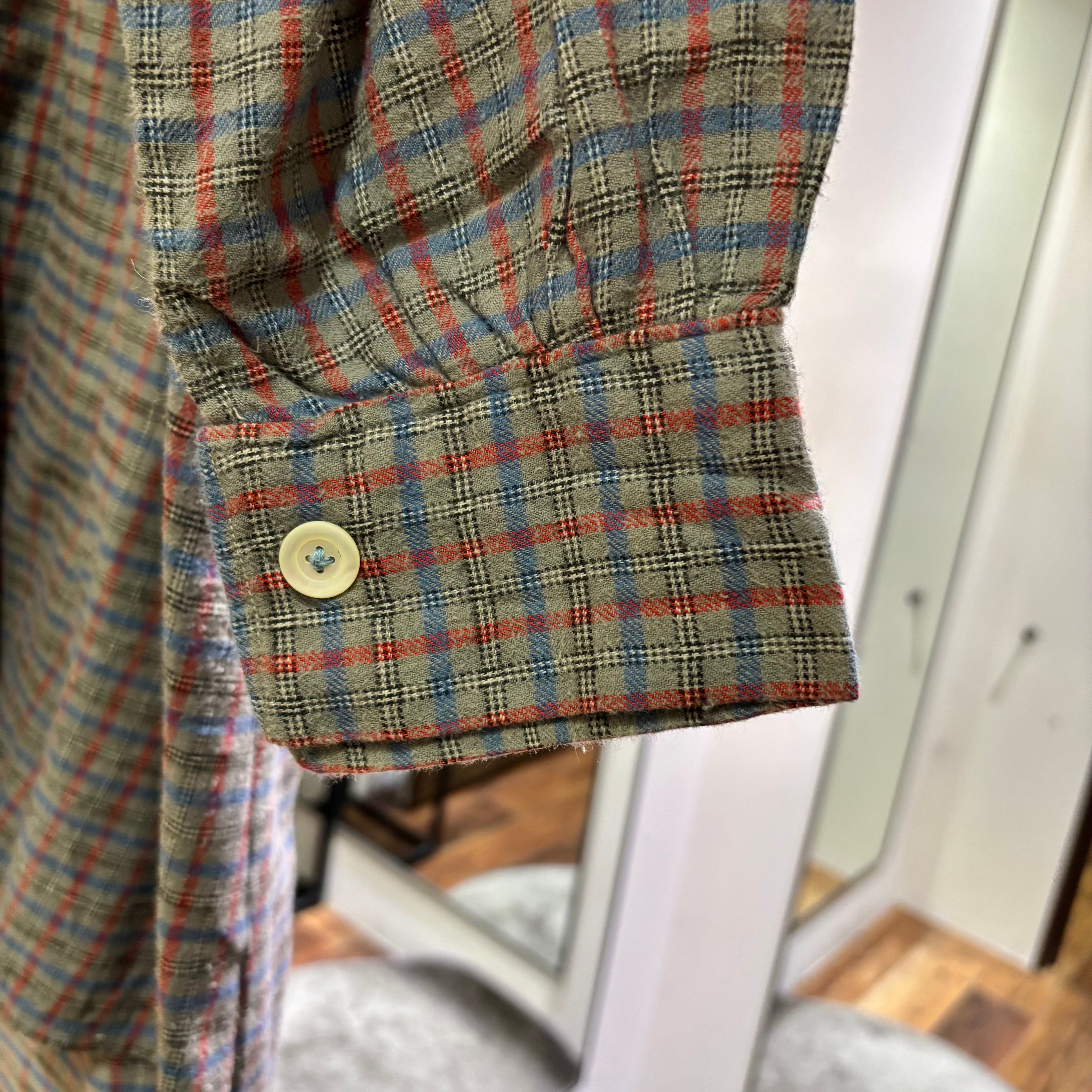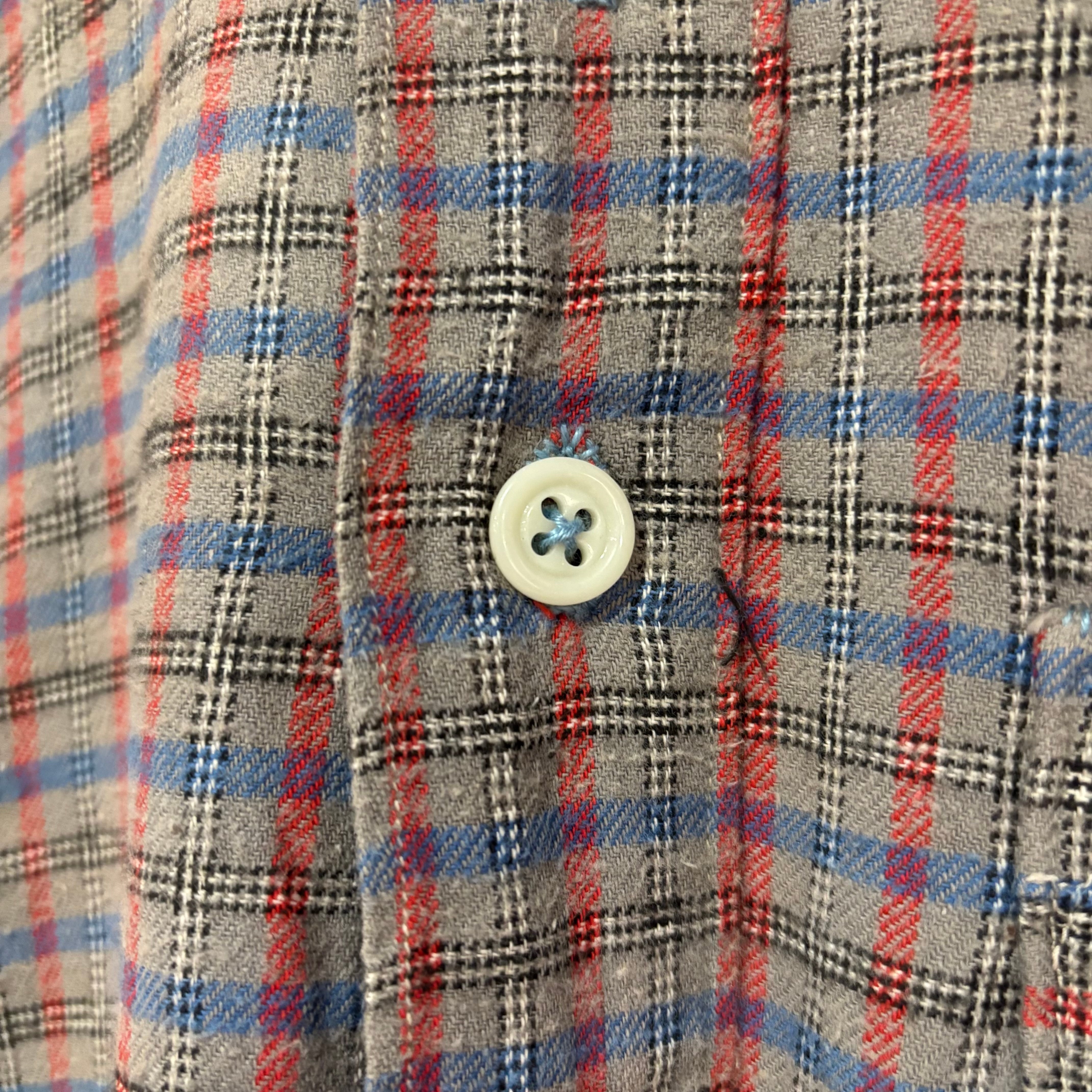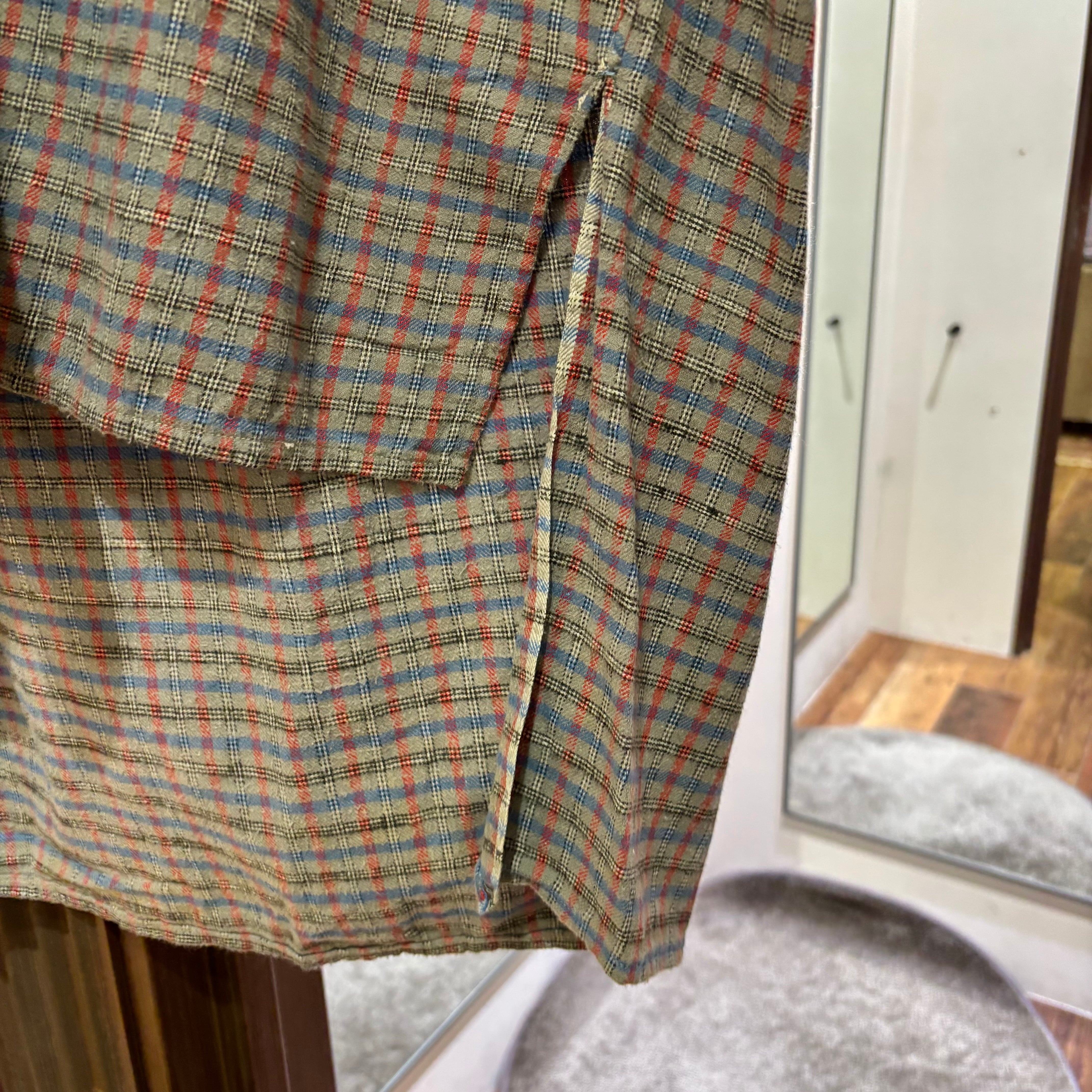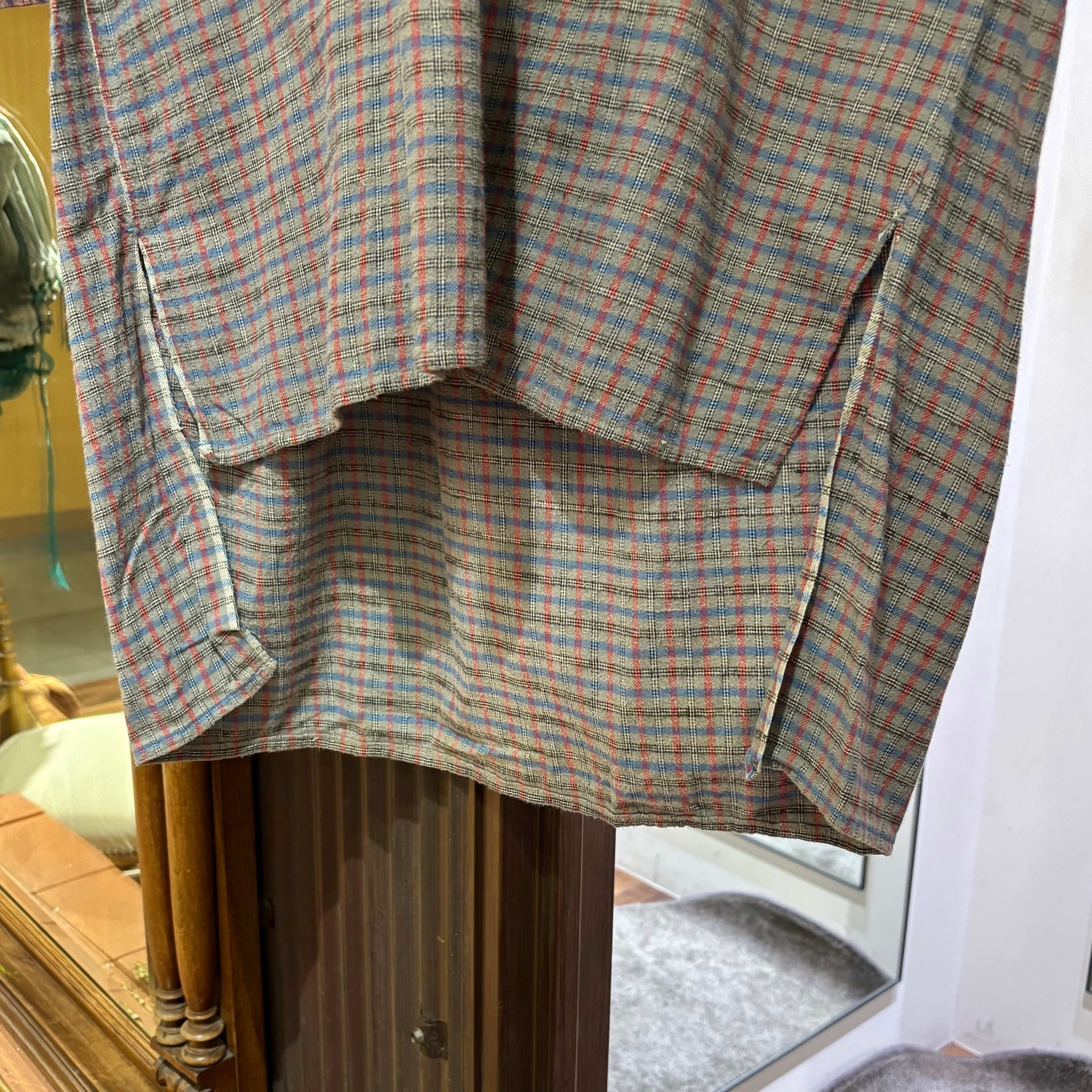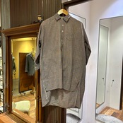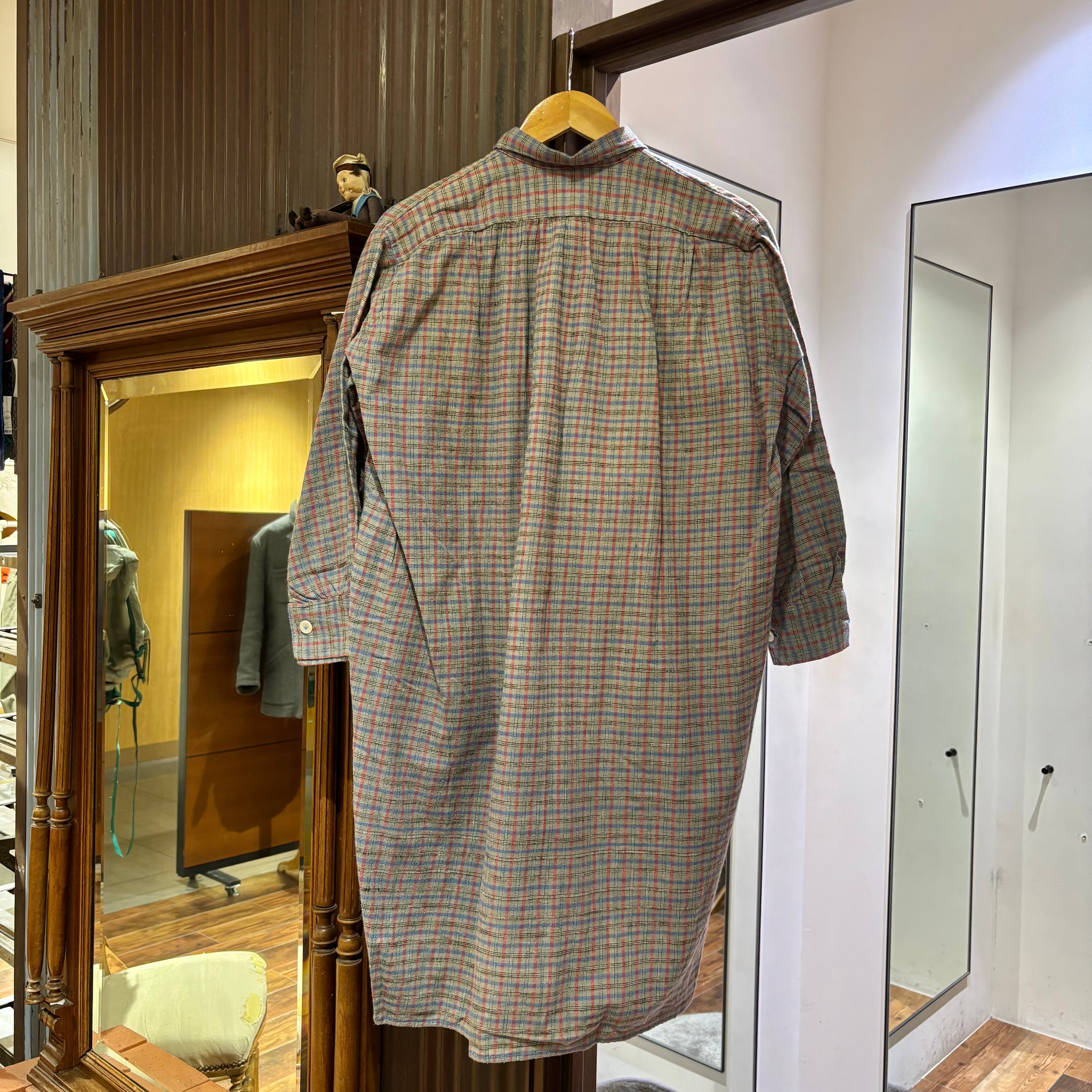 かなり古めのフレンチメイドのチェックグランパシャツ。