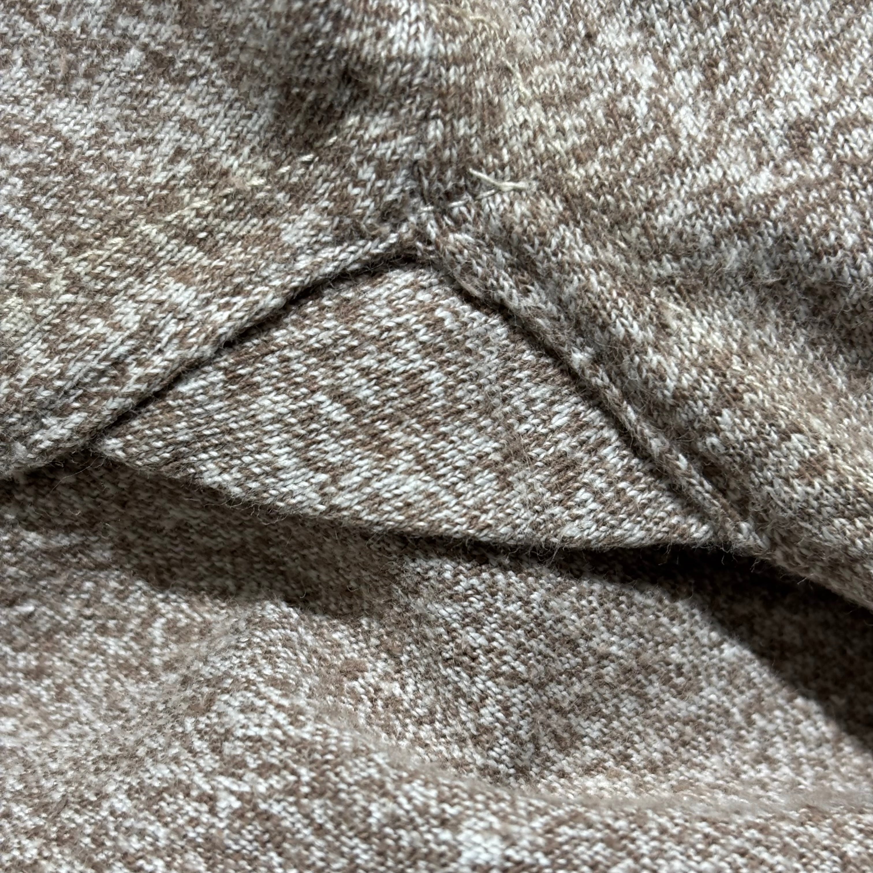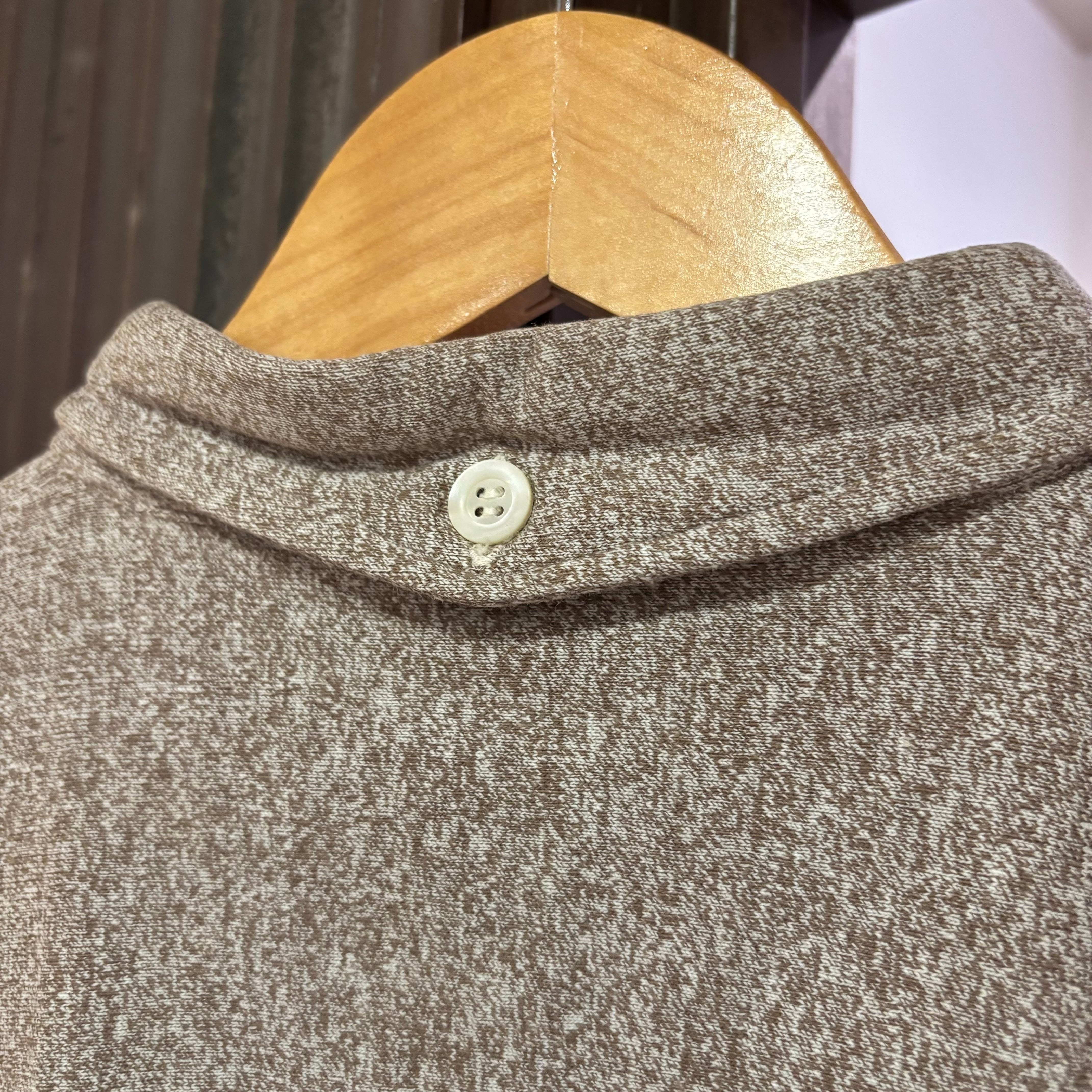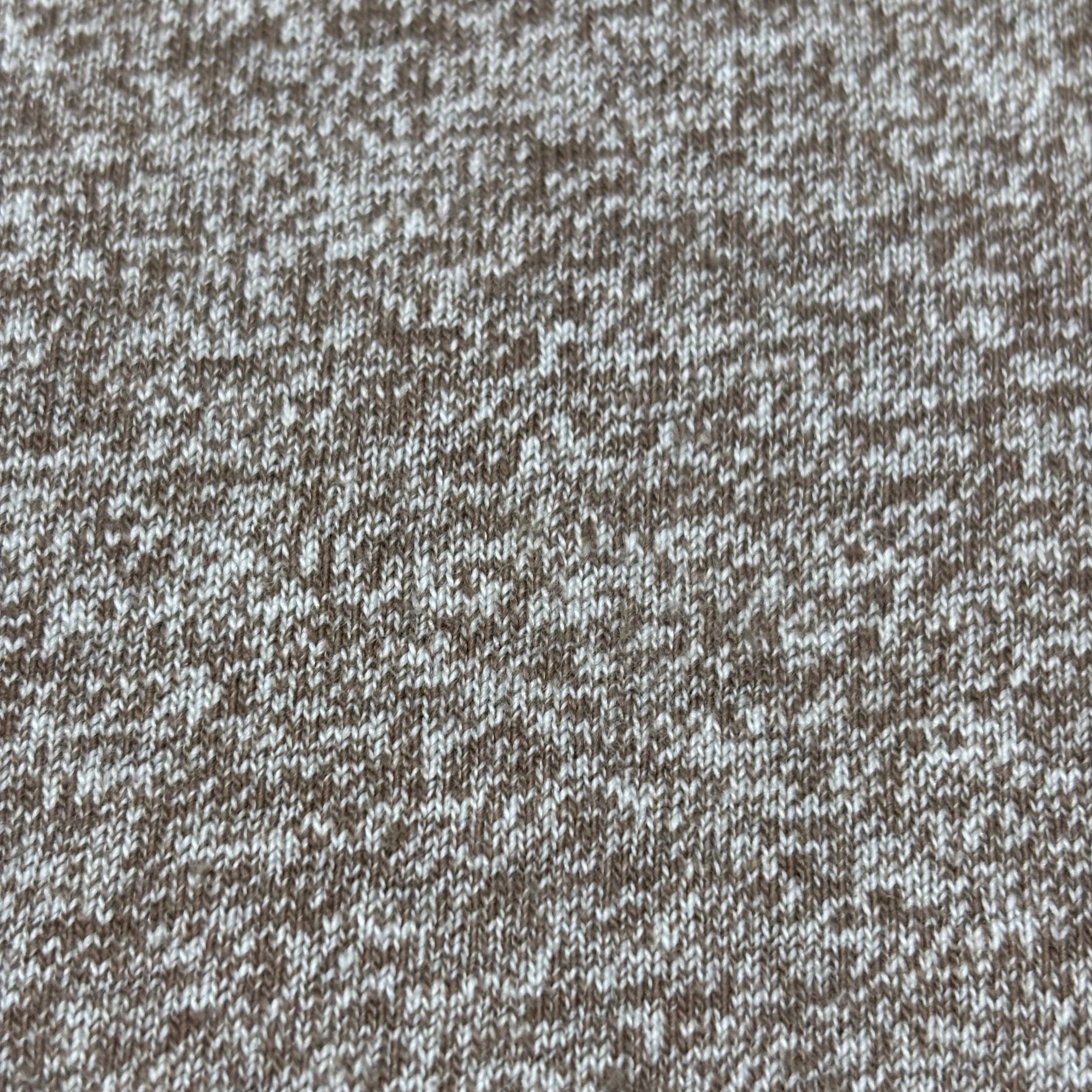 ホワイトとブラウンの二色が混じるコバートのような風合いの生地で、なんと天竺編み。
