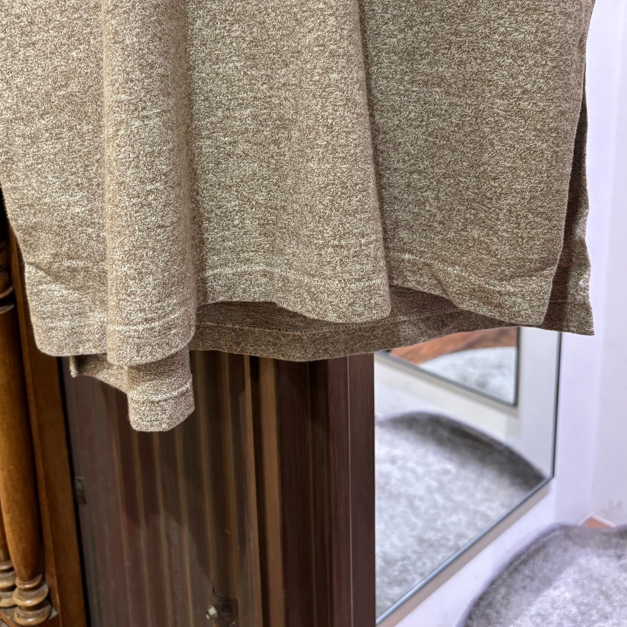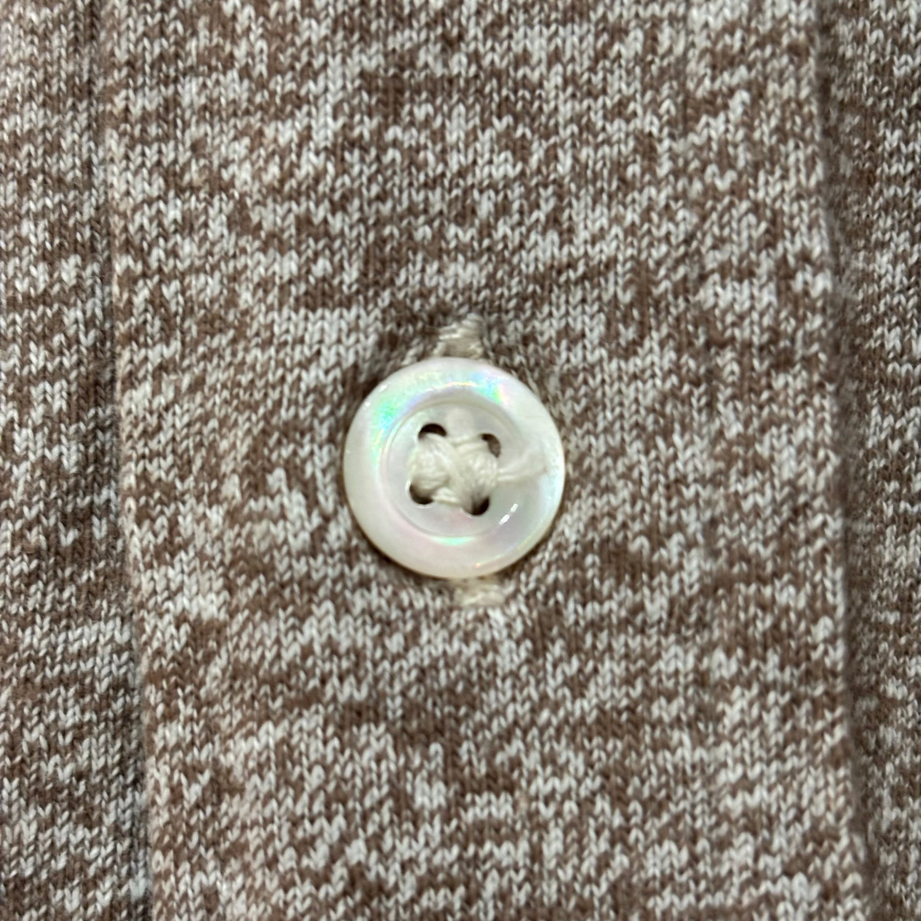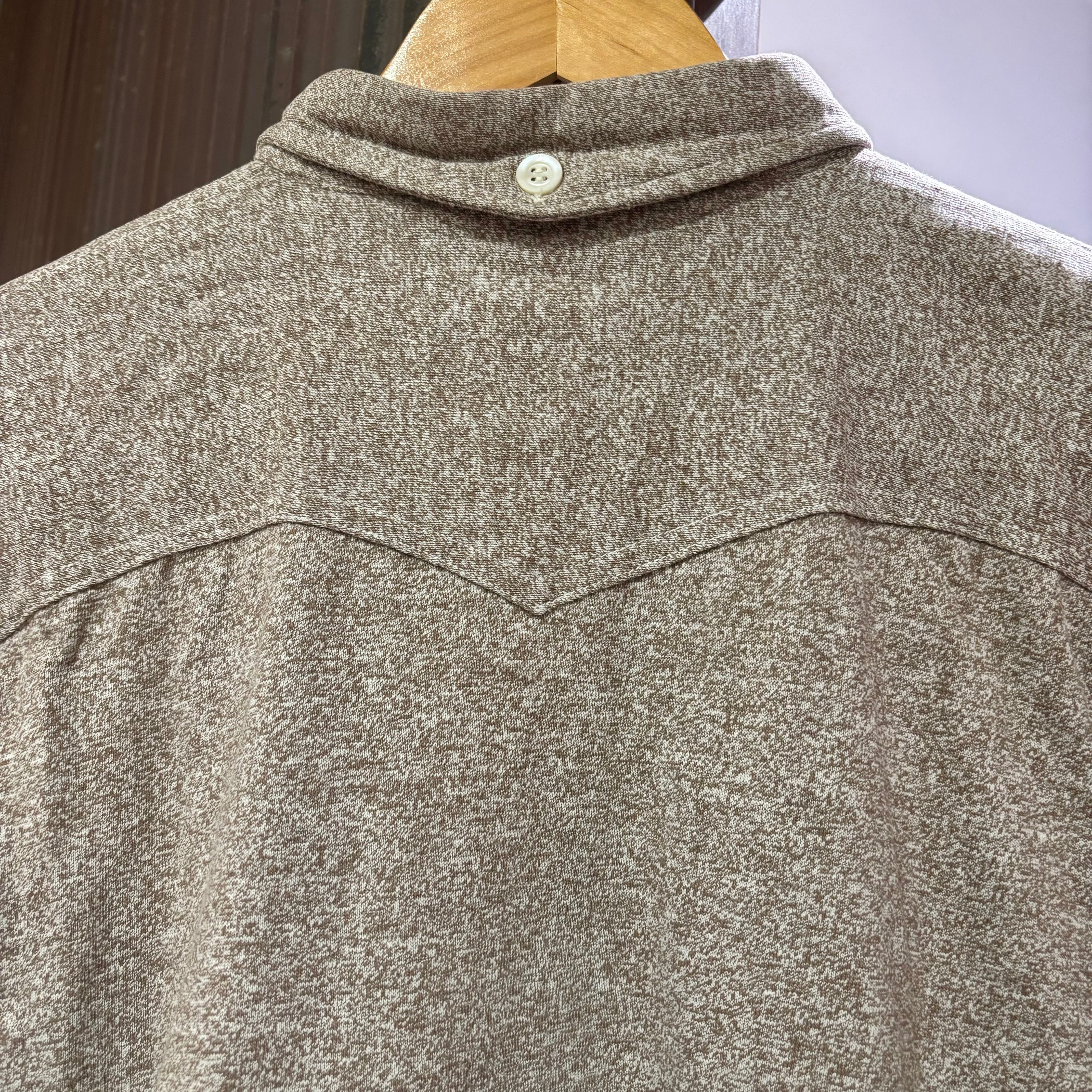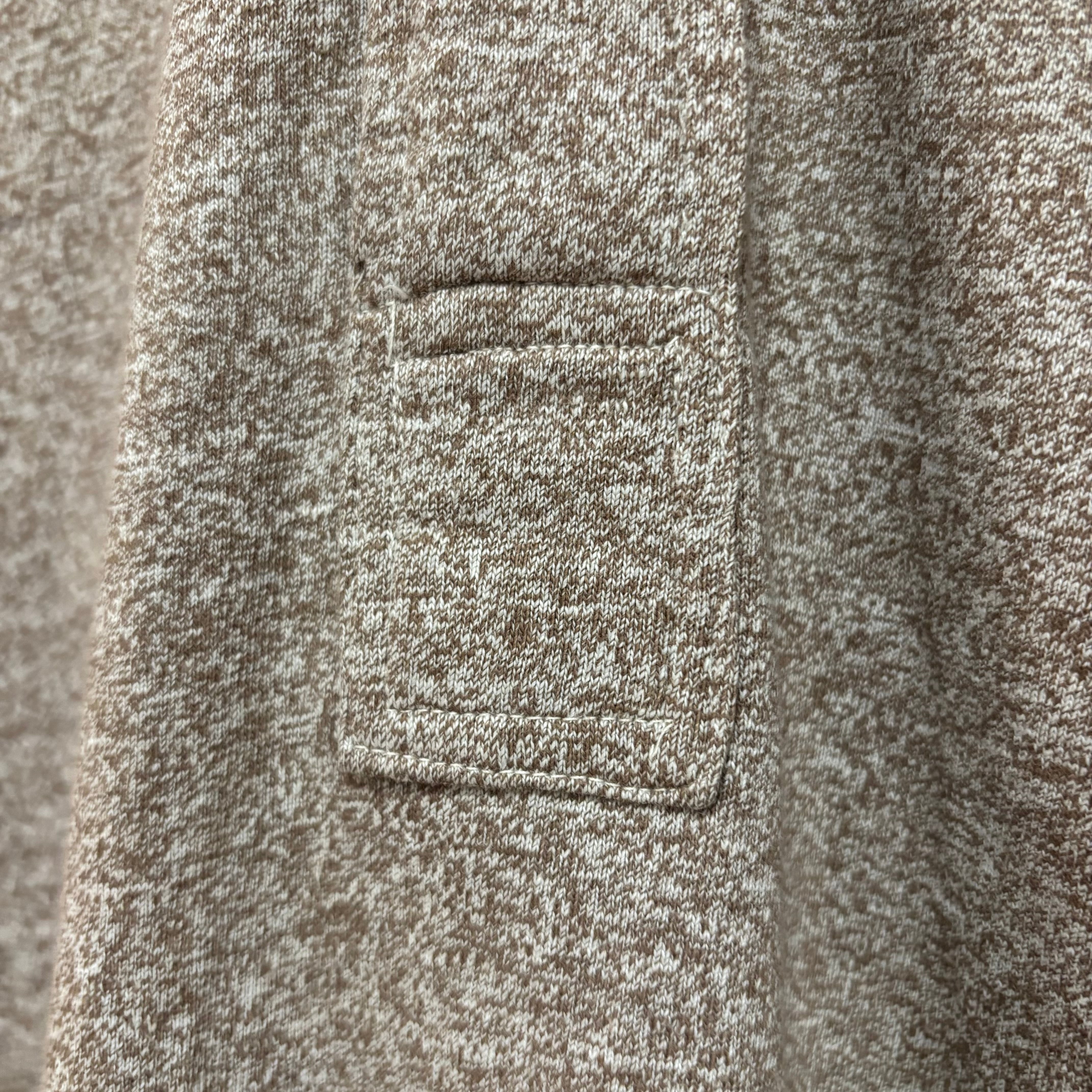 ホワイトとブラウンの二色が混じるコバートのような風合いの生地で、なんと天竺編み。