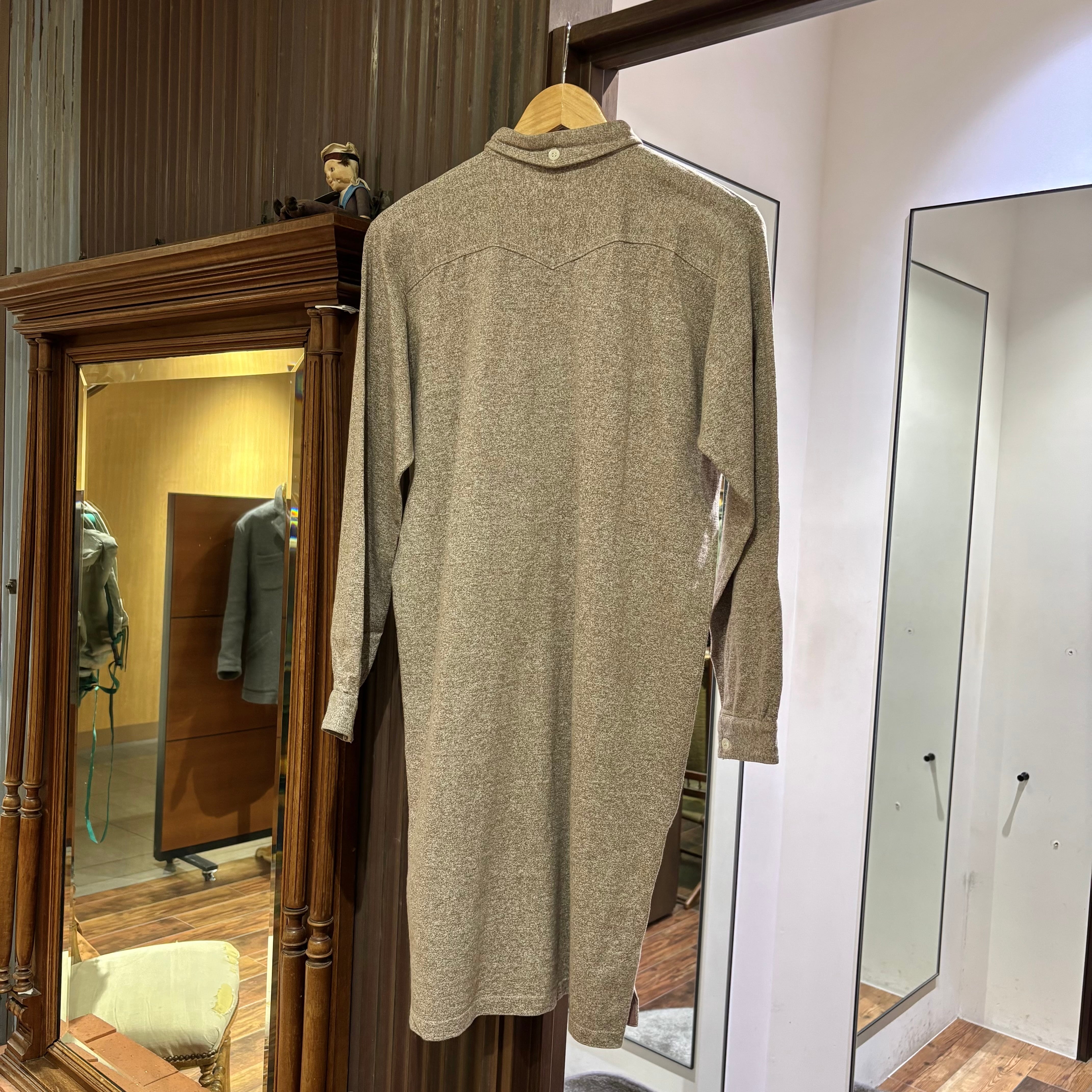 光沢感のある貝ボタンや裾マチ、独特なヨークとしっかり古いディテールも魅力的です。