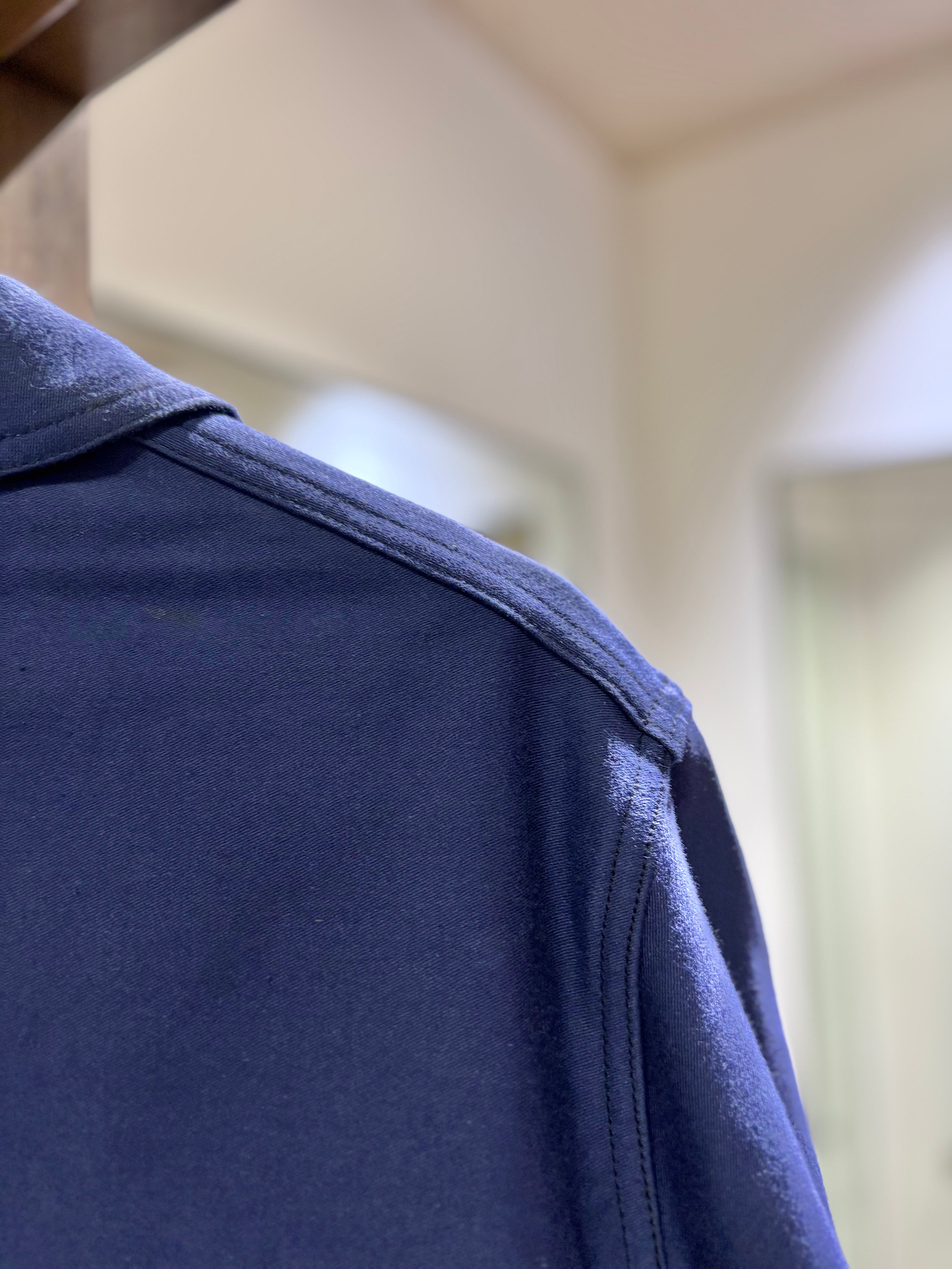 大きな丸襟に小さい胸ポケ、身頃裏のタグ等お探しの方も多いディテールのある1着です。