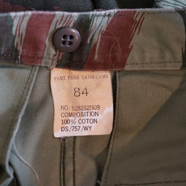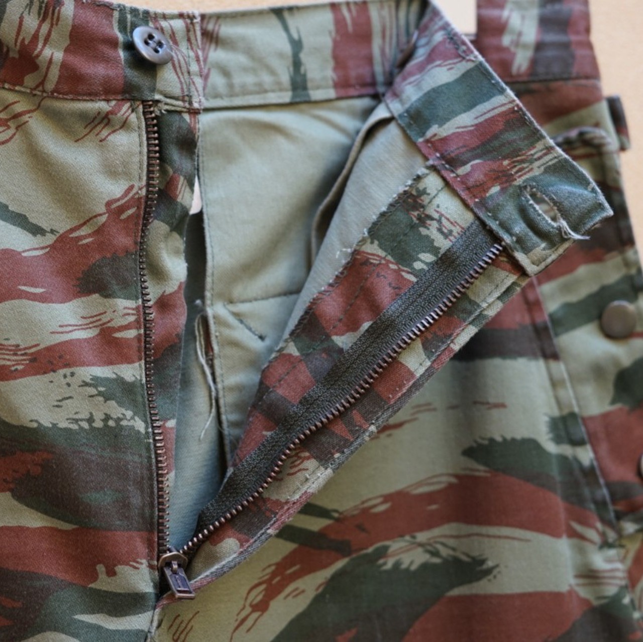 カモフラ柄に隠れて見えにくいですが、フロントポケットの三連のスナップボタン等、無骨なミリタリーらしさが満載。