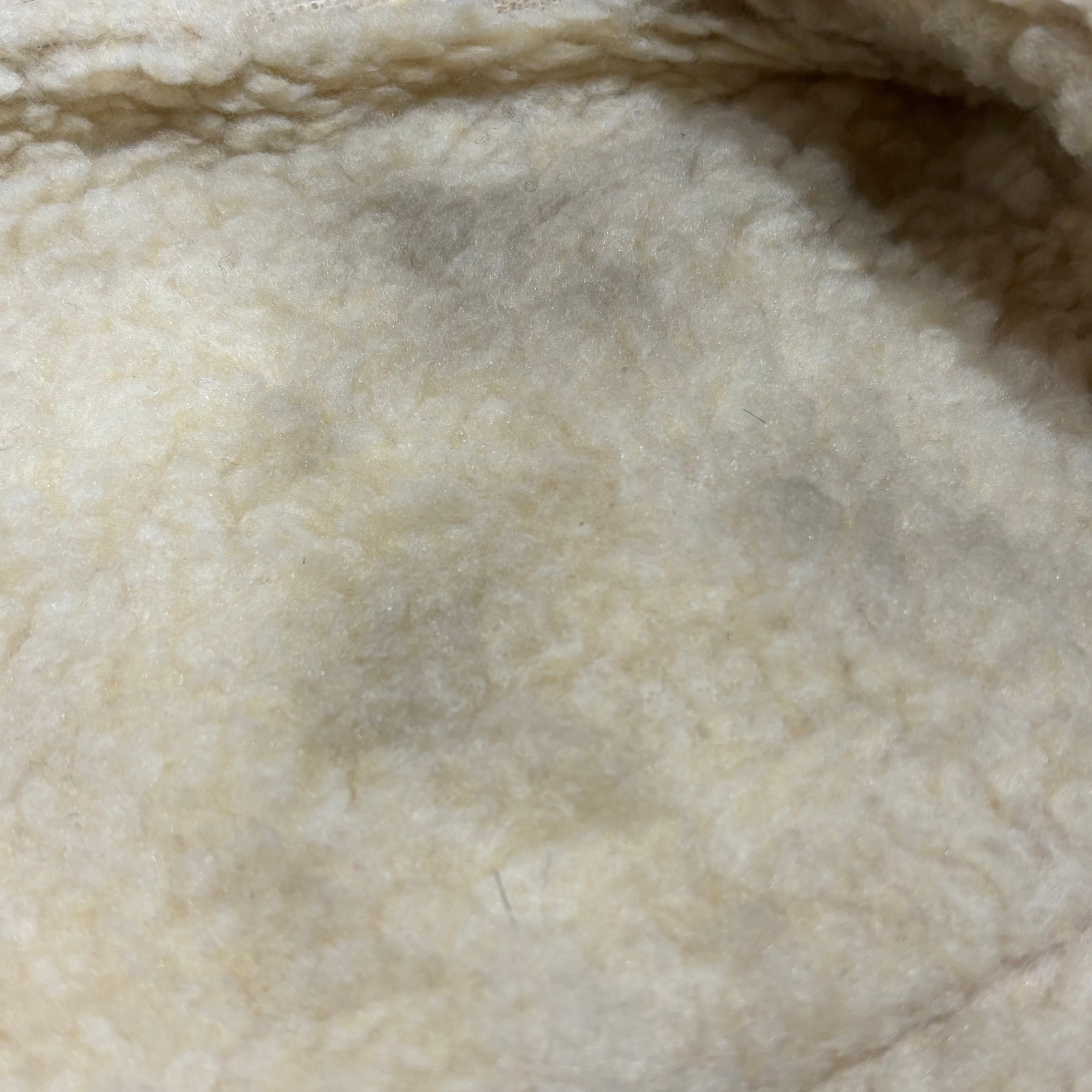 ライニングはボア仕様で、チンストラップも備わりレザーループに水牛トグルボタンと、