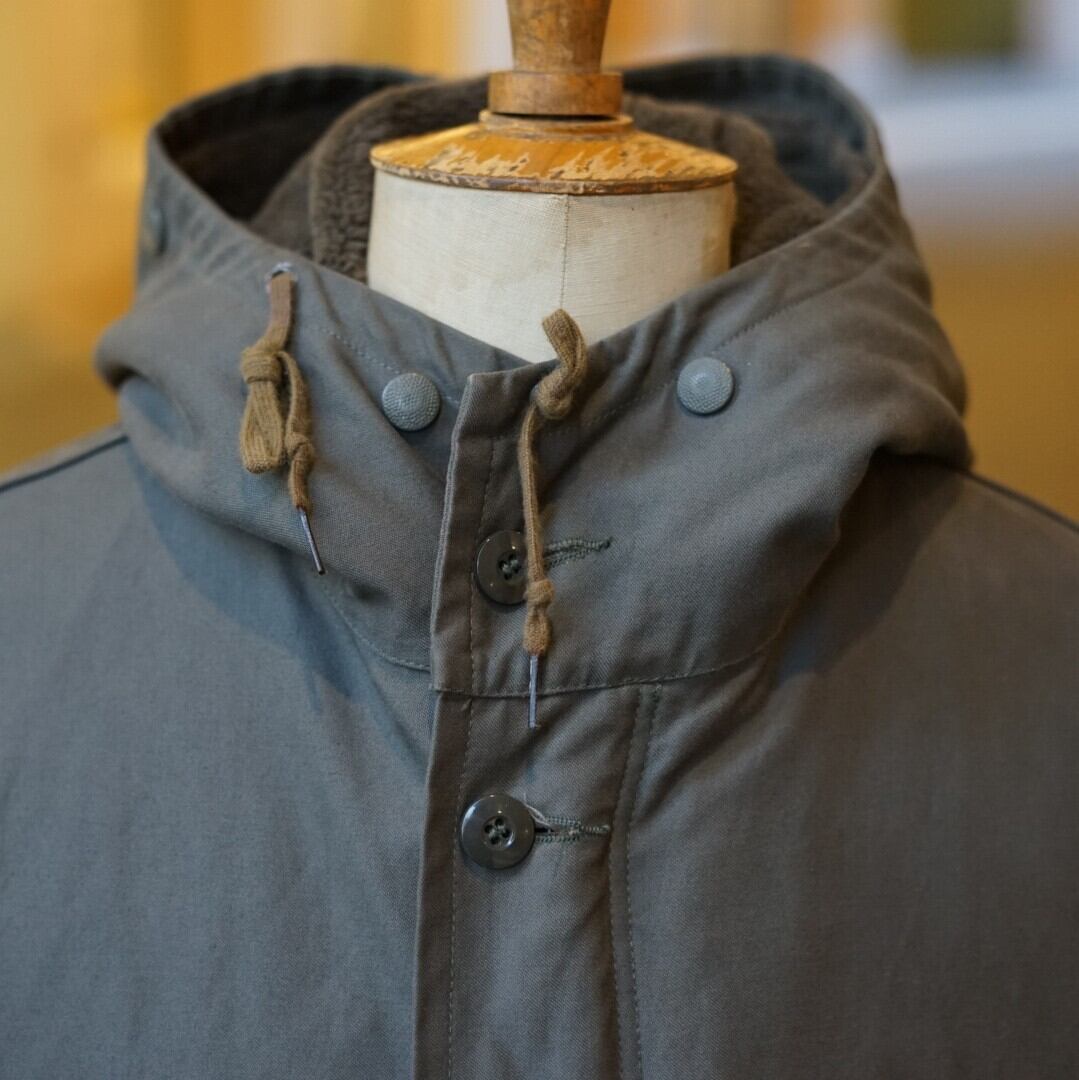 フランス軍のM64やベルギー軍のパーカー同様取り外し可能なライナーがついており、フードも備わる似た作りではありますが、生地のオンスの高さや絶妙な着丈設定は他国軍のミリタリーパーカーとは異なる良さを持った1着です。
