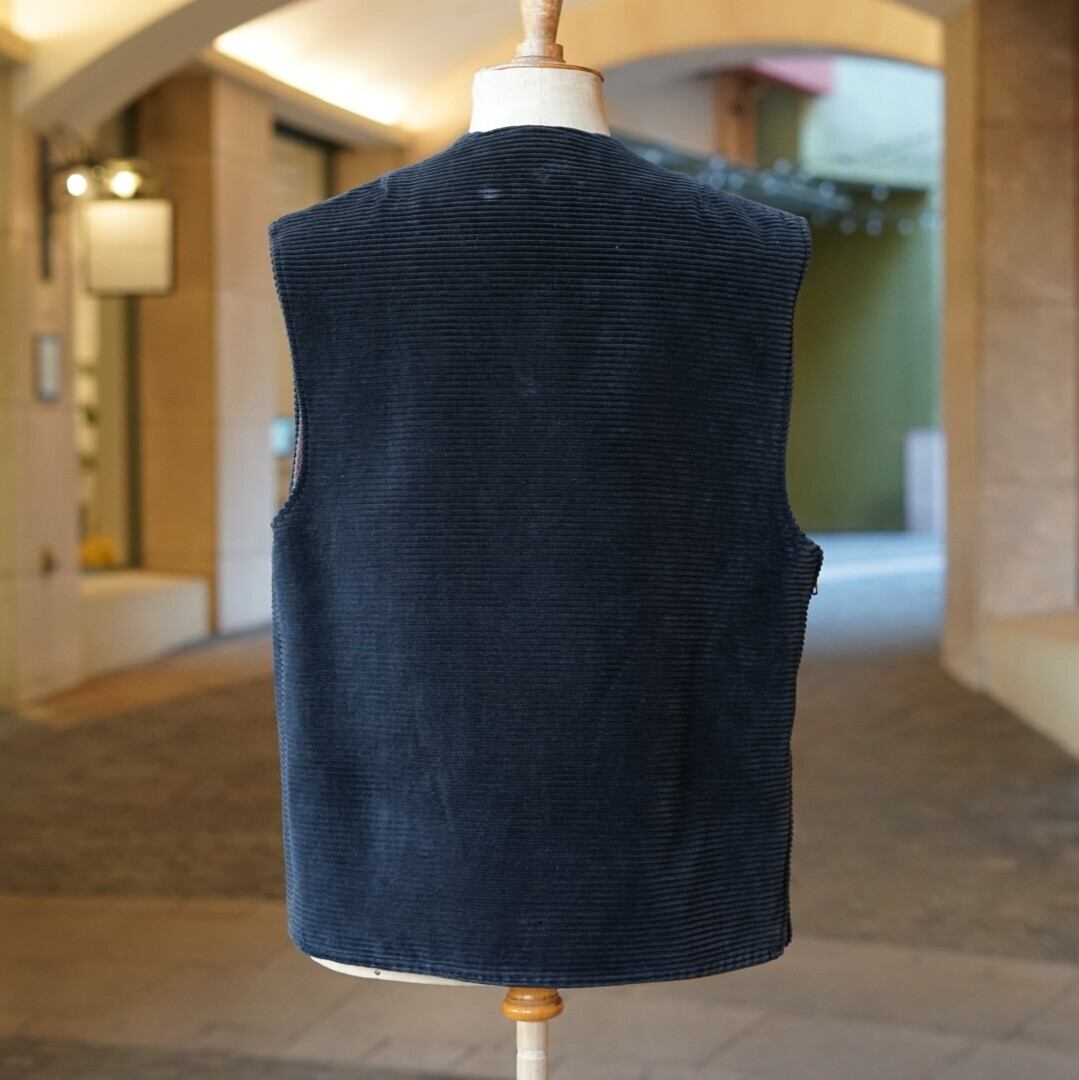 黒に近いダークブラウンカラーのコーデュロイベスト。