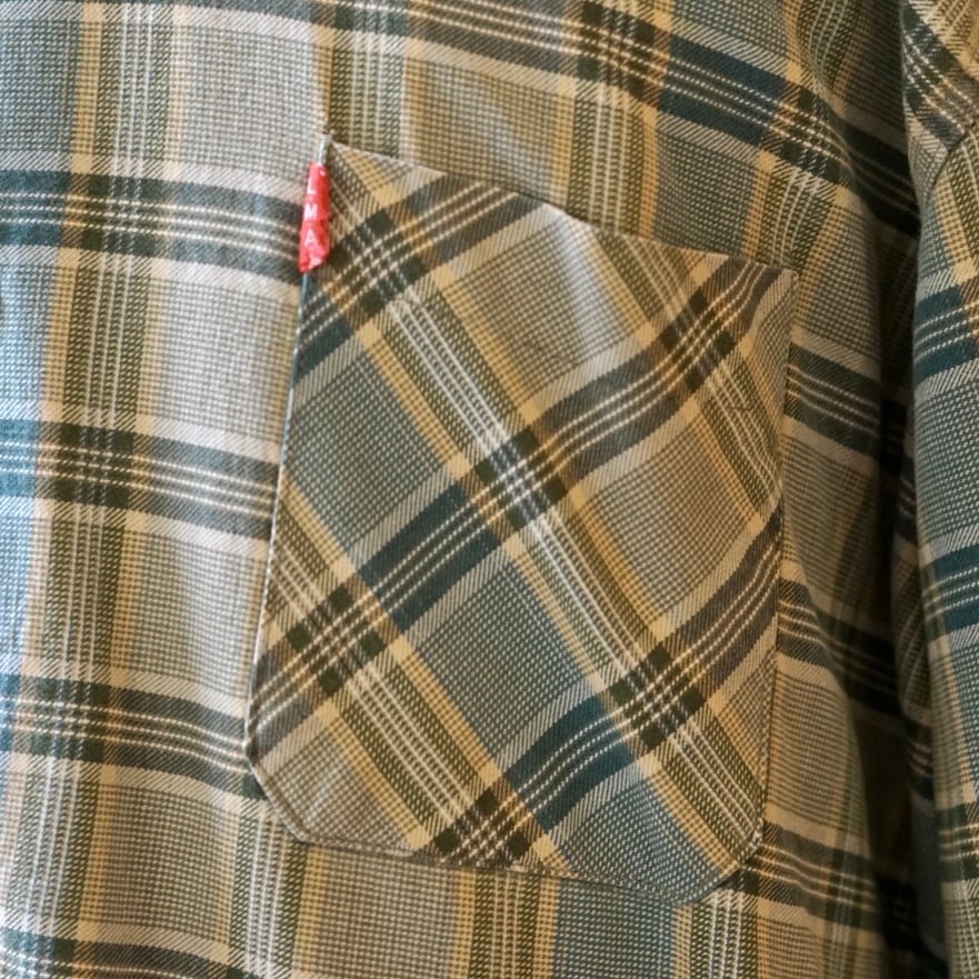 グリーンベースのカラーに黄や水色といった同トーンの配色がなされた柄になっており、ボージョンやヴィンテージの白ミリタリージャケットのインナーとしてもオススメです。