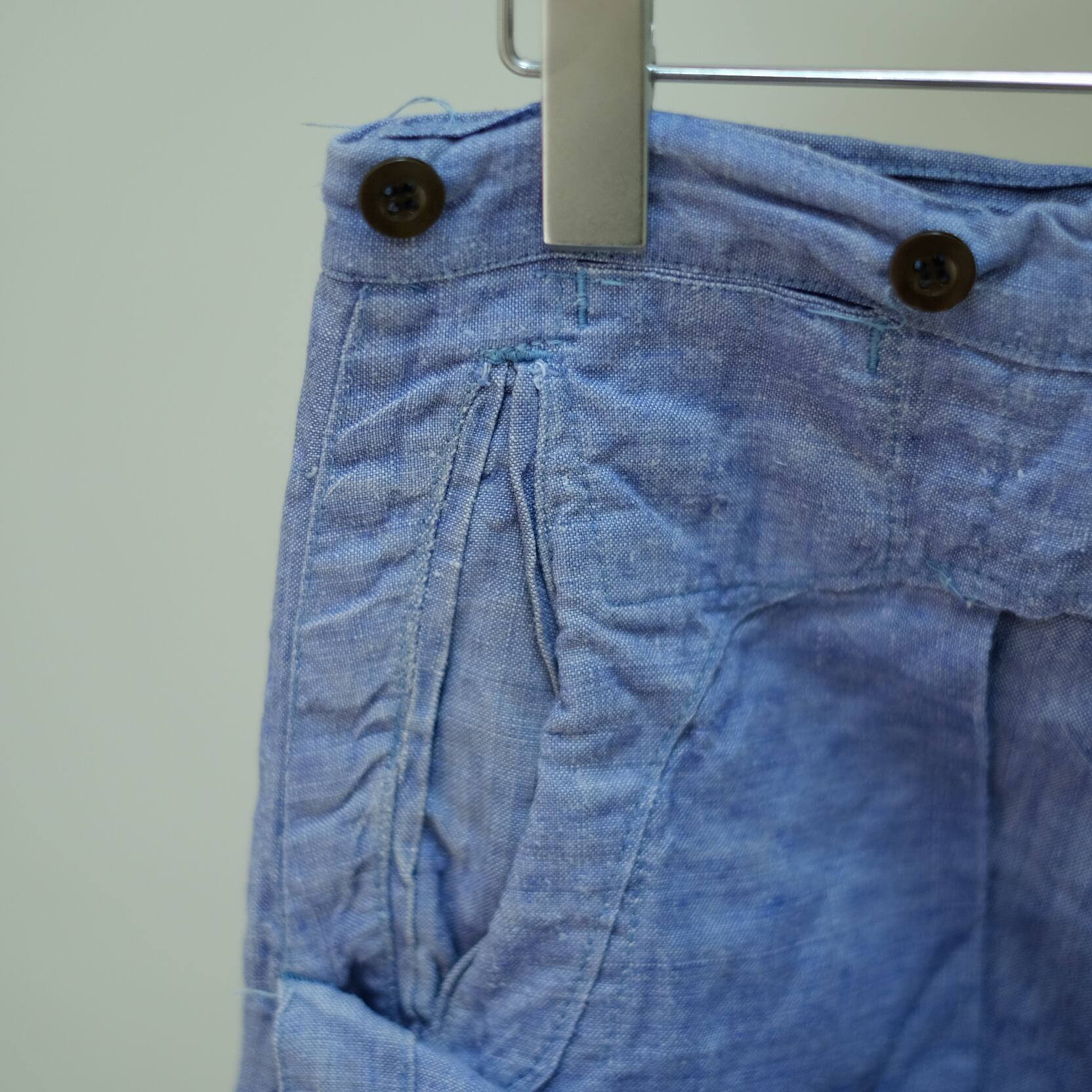 フランス海軍のラミートラウザーズ。セーラーパンツらしい前立てが特徴的なこちらは、ラミー素材が使用されており、通気性、放湿性に優れた一本です。