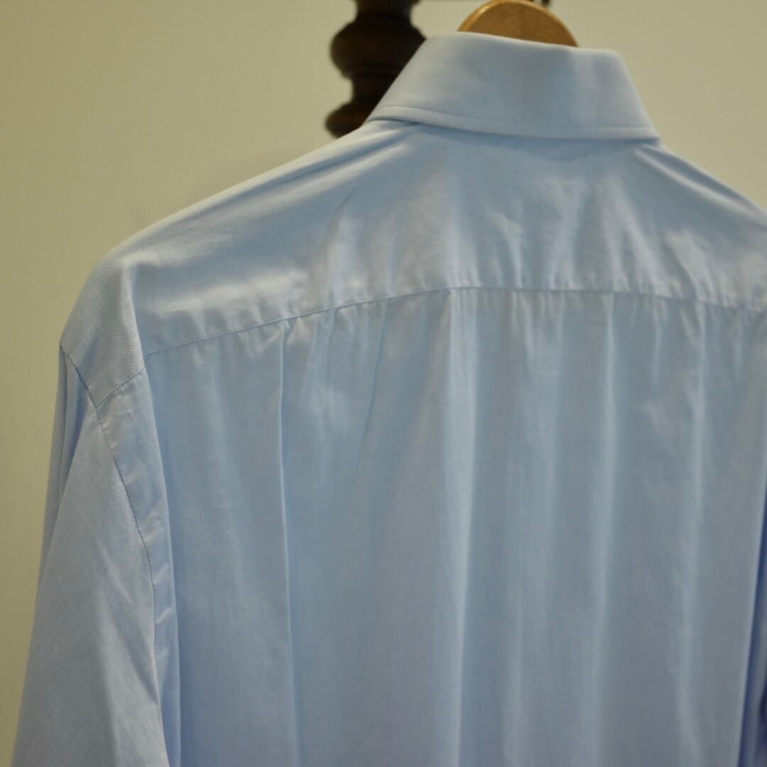 シングルカフスでお使いいただきやすいこちらは、淡いブルーにしなやかなコットン生地で着心地の良い一着です。