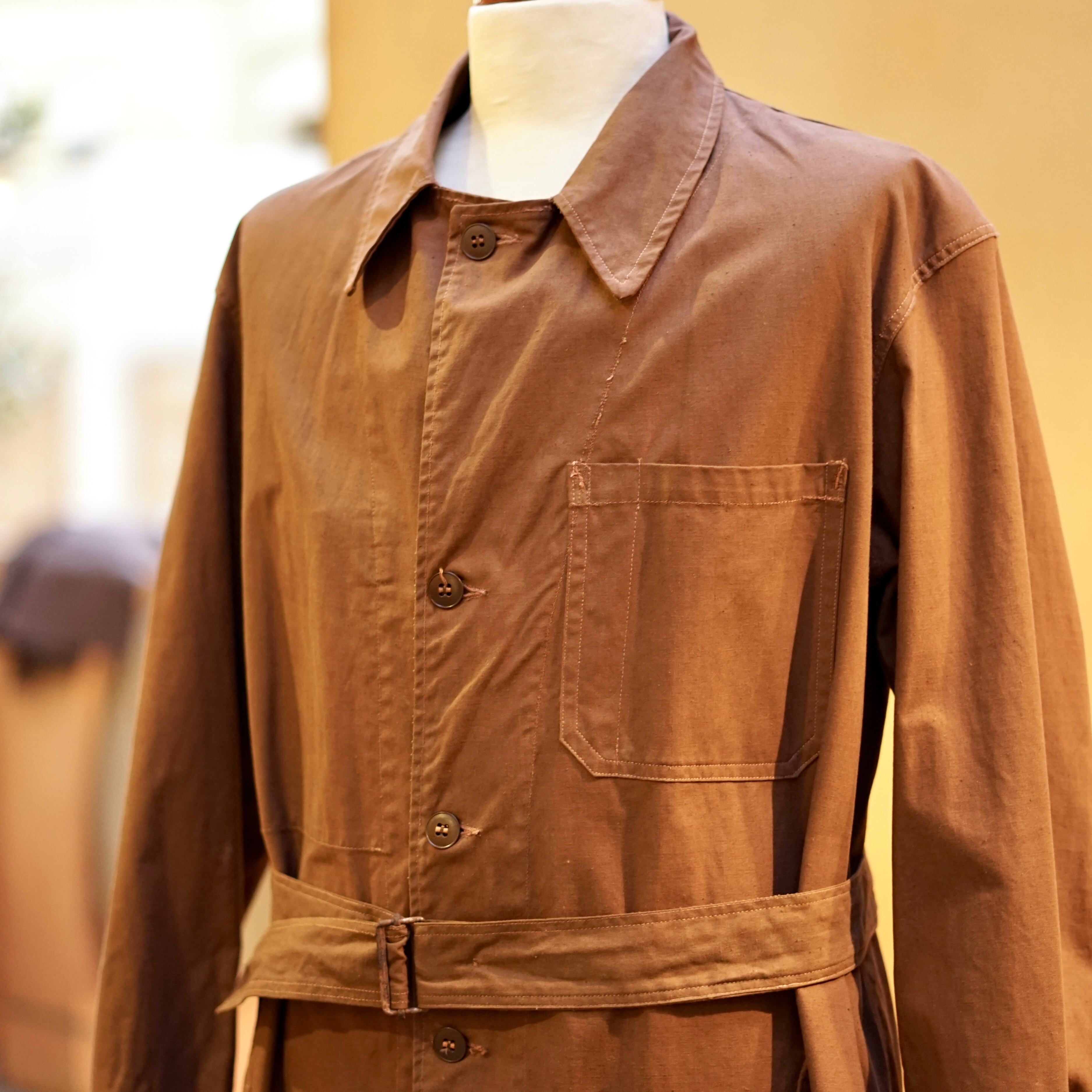 着丈の長いグランパシャツやカジュアルシャツの上から羽織るだけでも様になるワークコートを是非この機会にどうぞ。