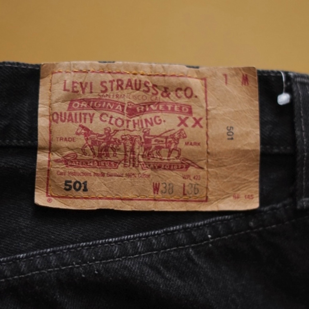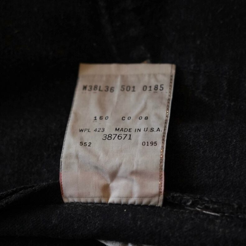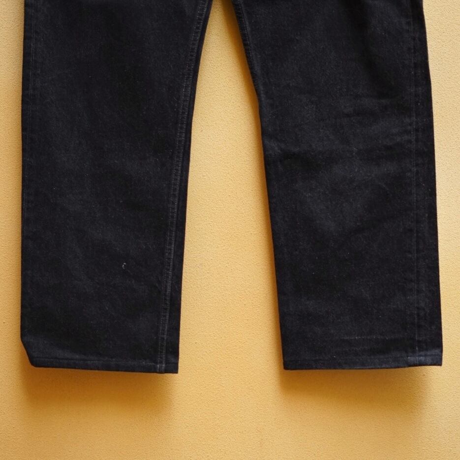 1995年製のアメリカメイドのブラックデニム。特筆すべきはウエストですね。W38もあるのでかなり極太なシルエット。昨今ではブラックデニムをかなり太く履かれる方も多くいらっしゃると思います。そんな方におすすめな一本です。