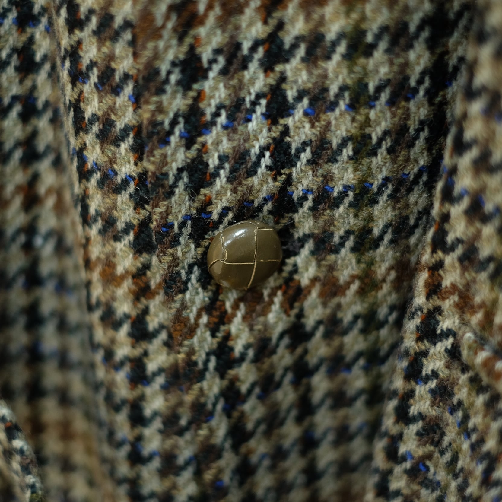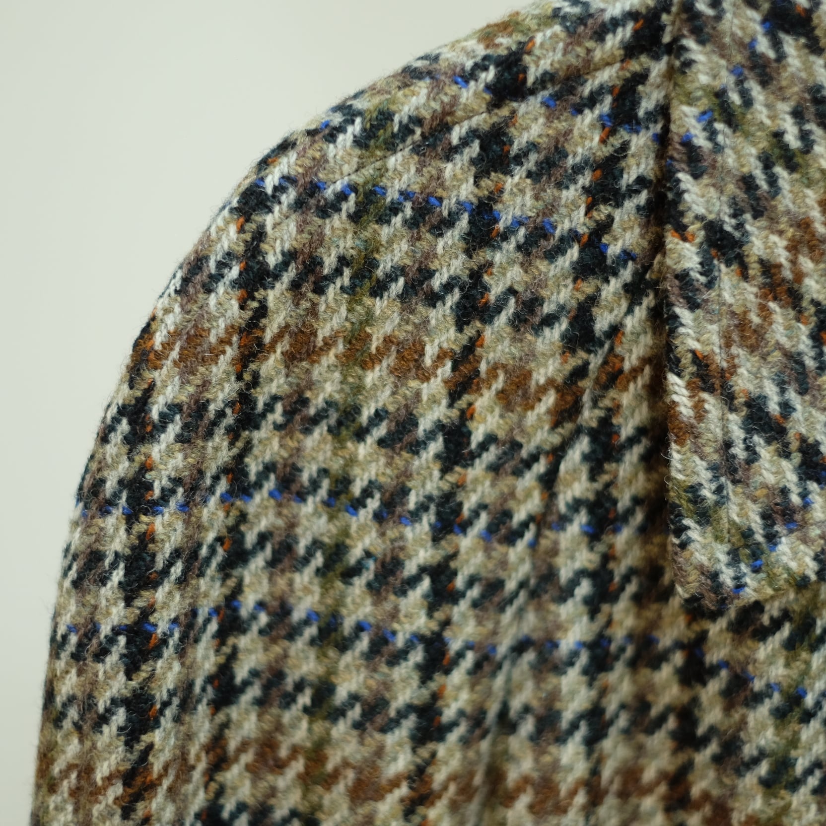 ラグランスリーブに多色の羊毛が使われたハウンドトゥース柄のツイード生地が特徴的なこちらはベルトも付きます。