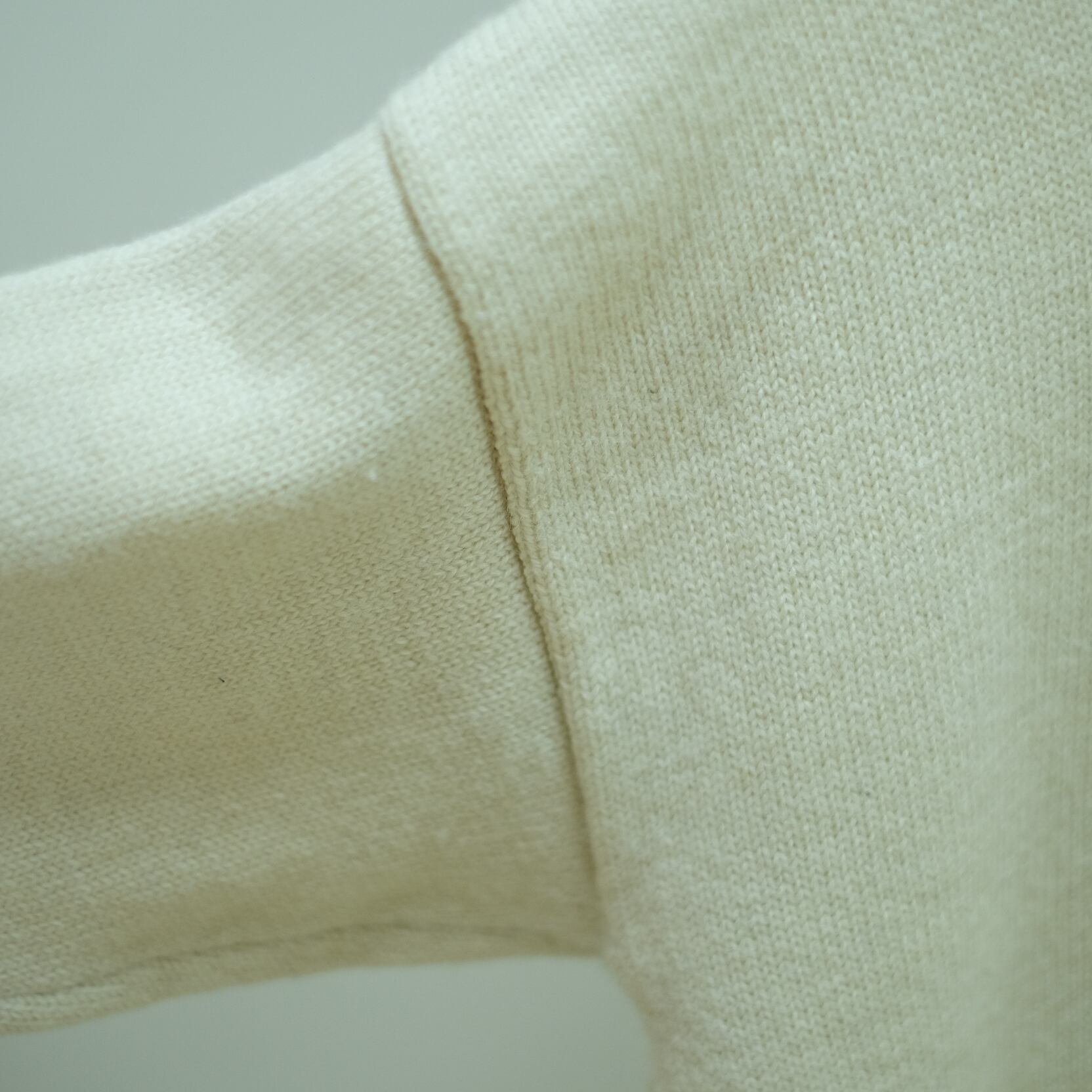 シンプルなデザインにシルエットのこちらは、ぎゅっと目の詰まったハイゲージの編みで一枚でとても暖かです。
