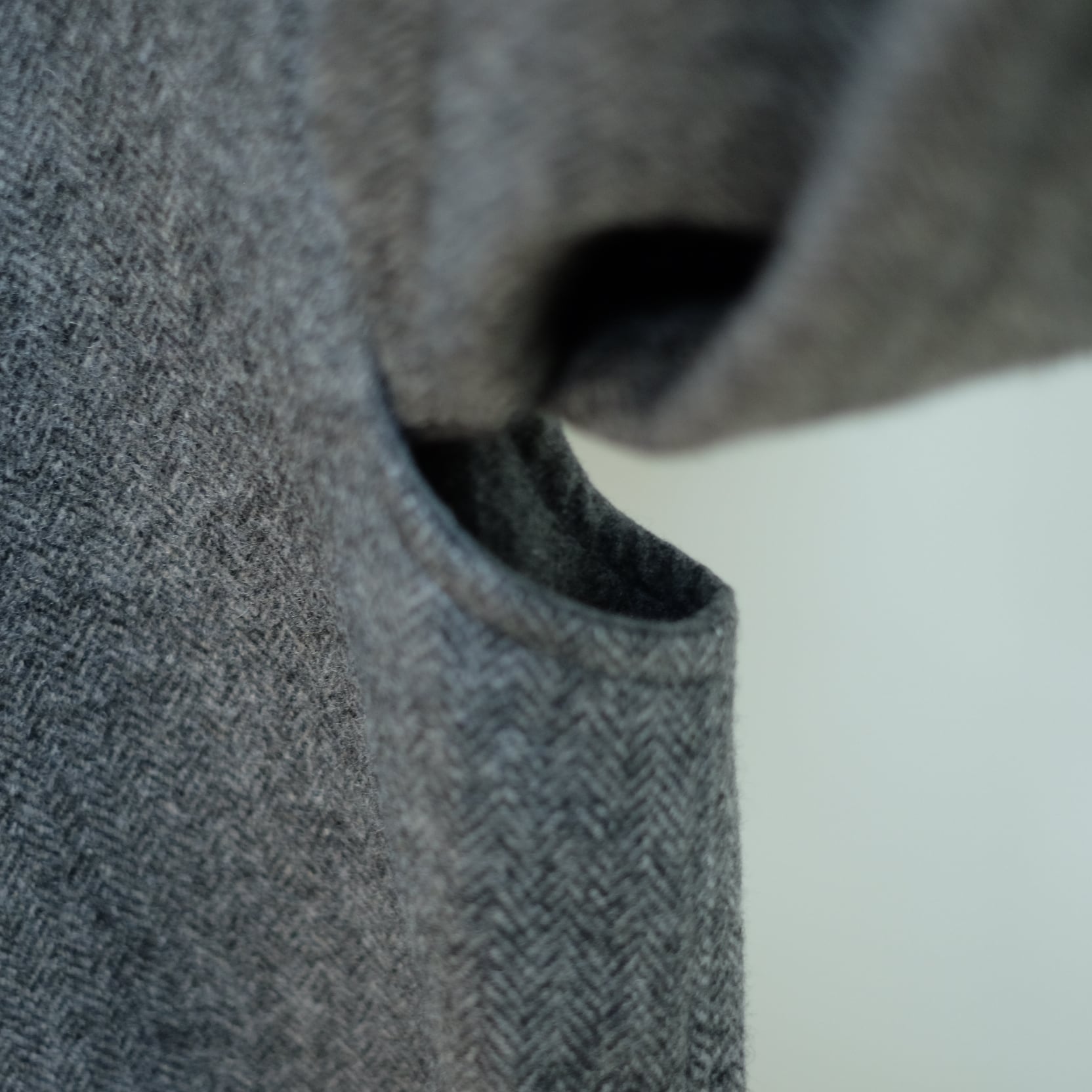 グレーのヘリンボーンツイードで様々なスタイルに合わせてお楽しみ頂けます。